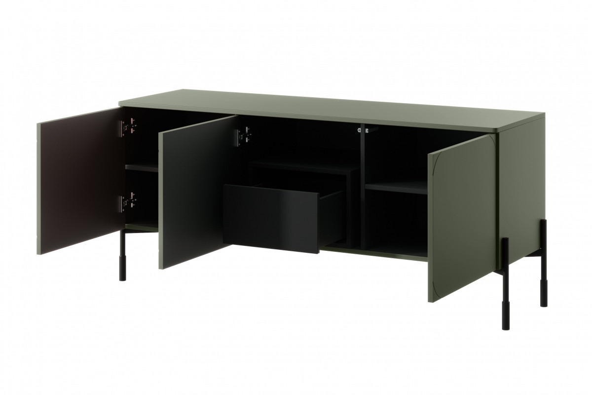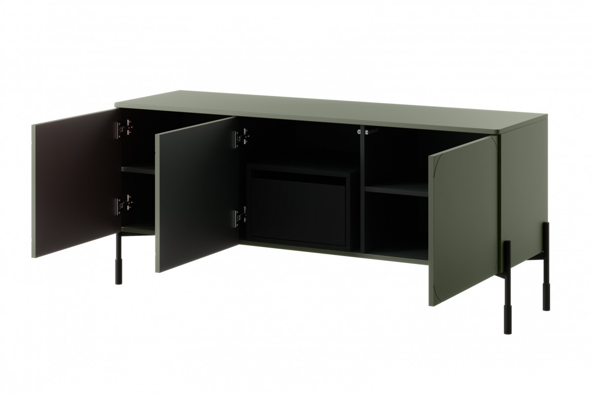 RTV skříňka třídveřová se skrytou zásuvkou Sonatia 150 cm - olivová, Šířka: 154, Výška: 65, Hloubka: 45, Výška nožek: 20, Montáž: