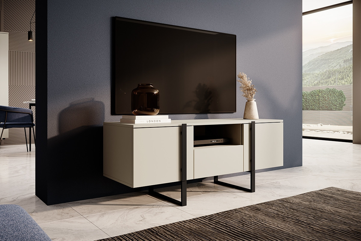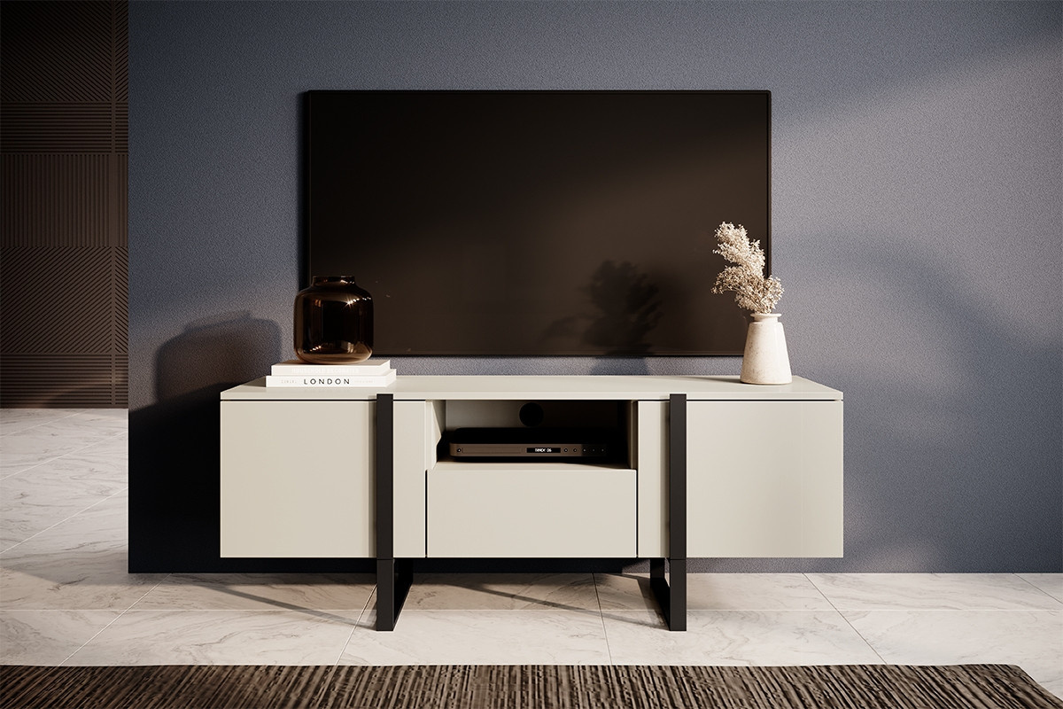 RTV Verica 150 cm skříňka s výklenkem - kašmír / černé nohy, šířka: 150, výška: 57, hloubka: 45, výška nožiček: 17