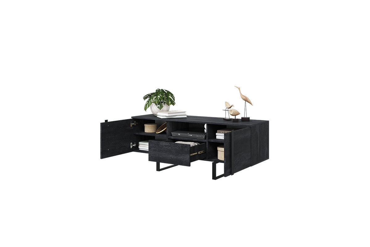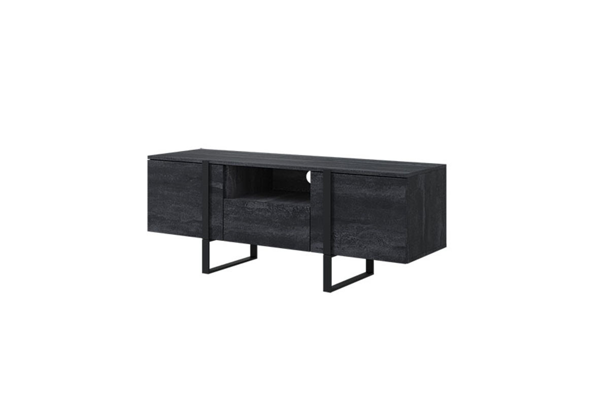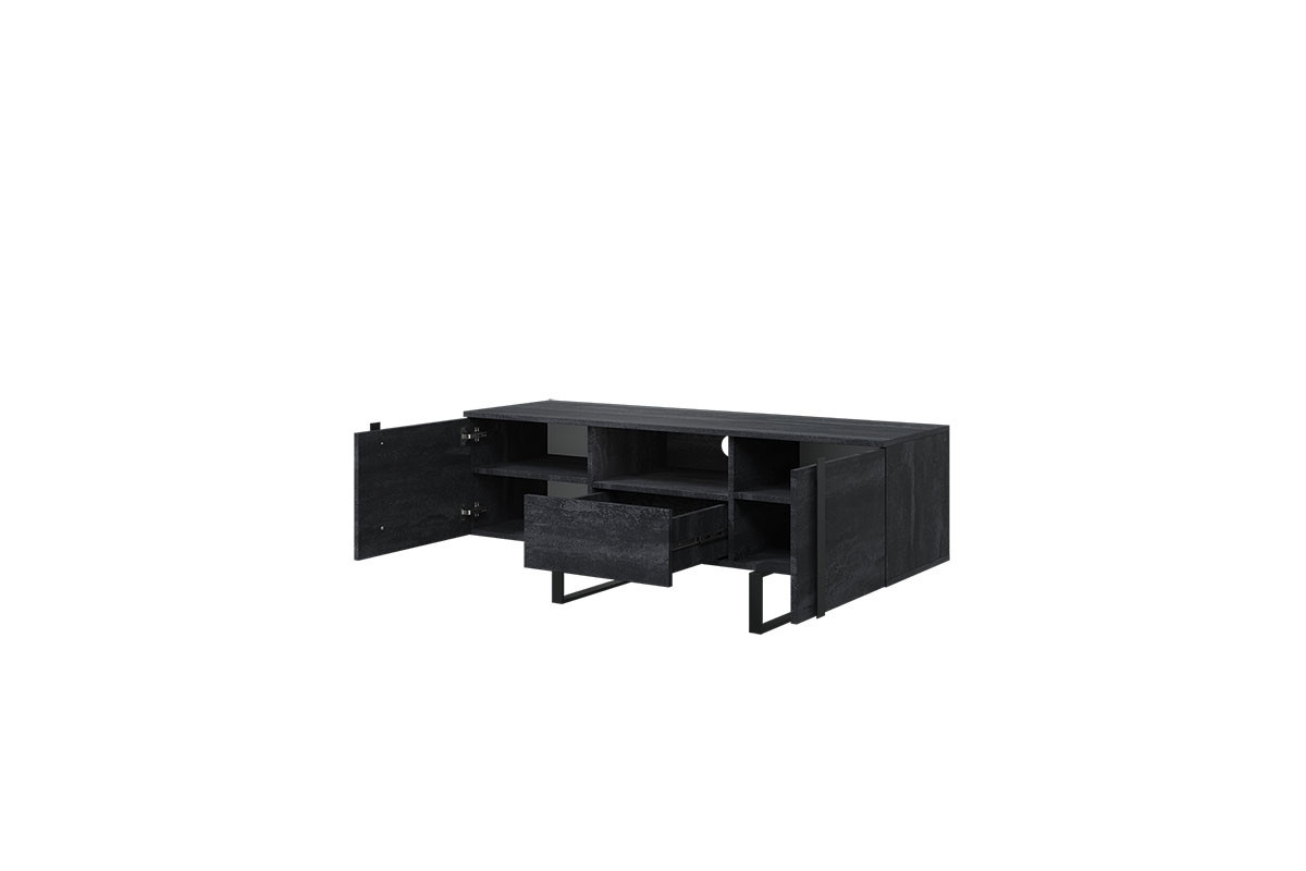 Skříňka RTV Verica 150 cm s výklenkem - černý beton / černé nožky