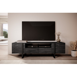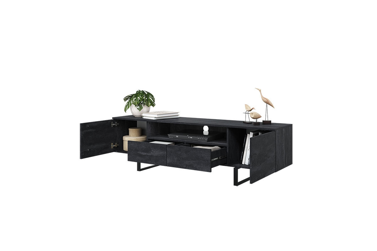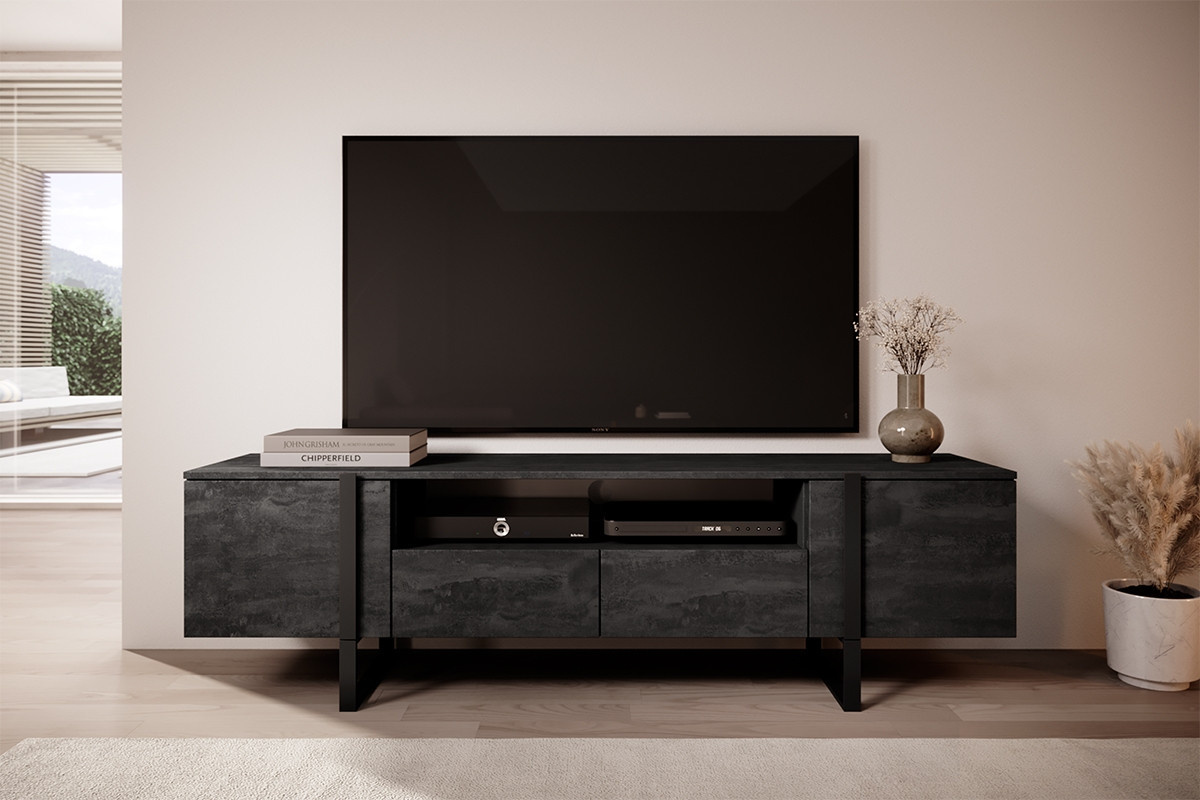 Skříňka RTV Verica 200 cm s výklenkem - černý beton / černé nožky