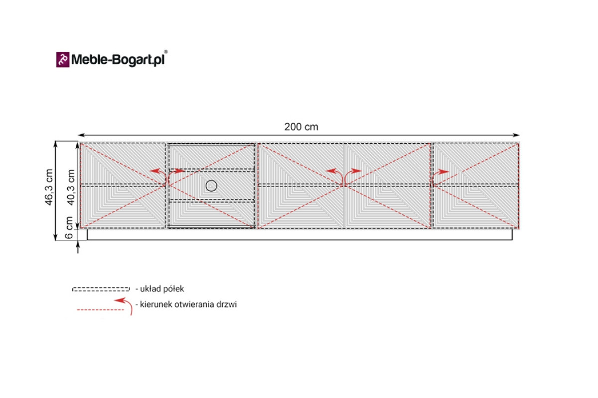 Skříňka RTV 200 cm Asha pětidveřová s drážkovaným čelem - bílý mat, Šířka: 200, Výška: 46, Hloubka: 40