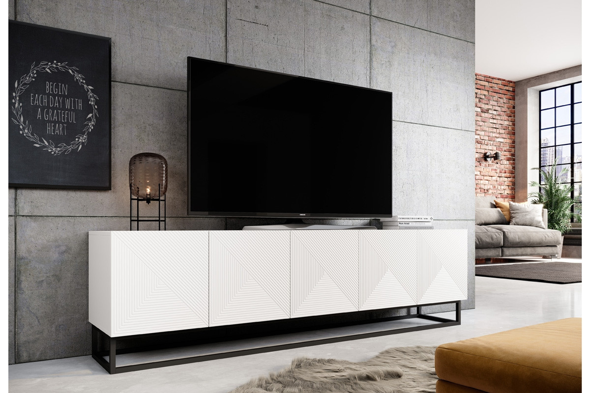 RTV skříňka Asha 200 cm na kovových nohách - bílý mat, Šířka: 200, Výška: 56, Hloubka: 40, Výška nožek: 16