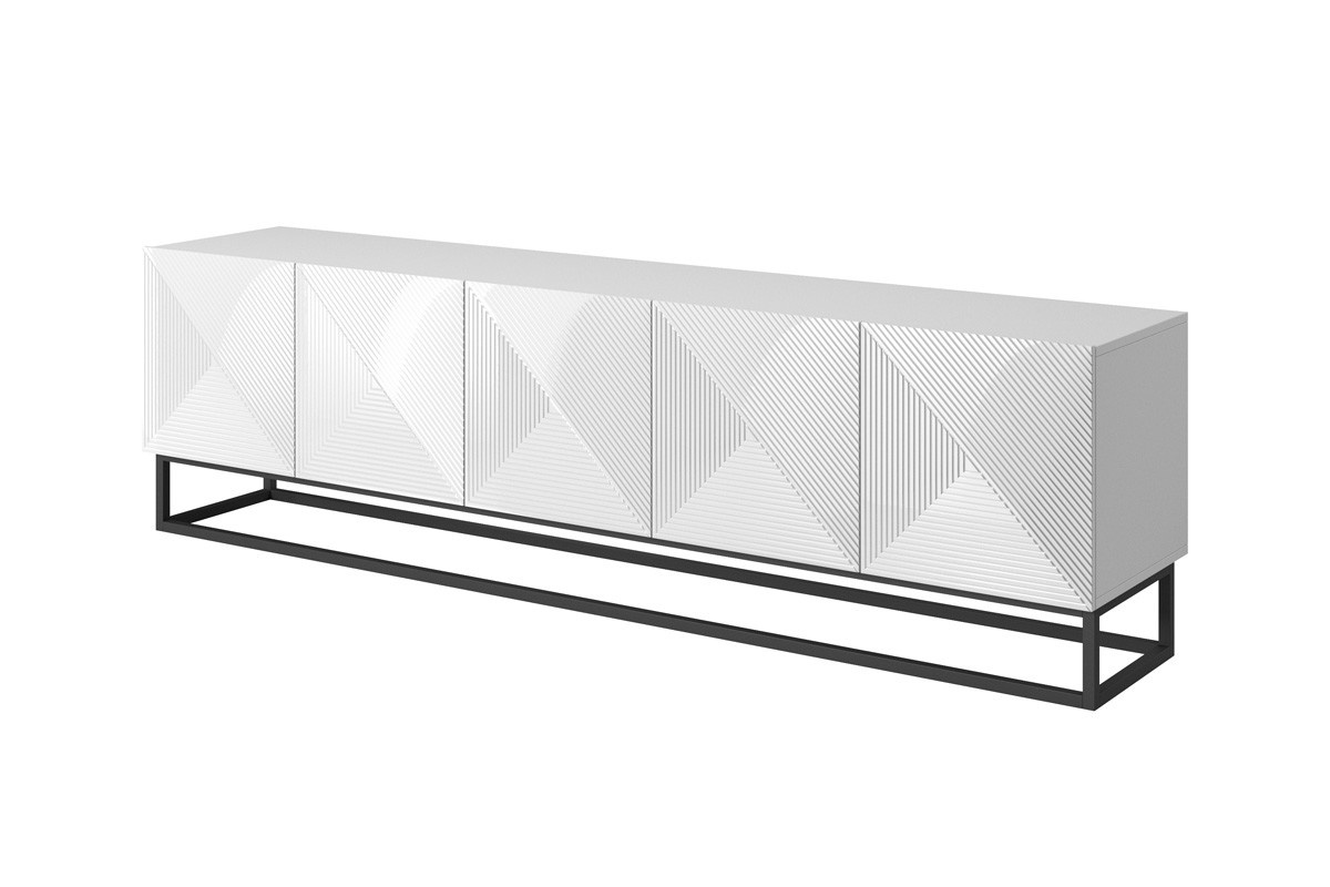 Skříňka tv Asha 200 cm na kovovém základu - Bílý lesk
