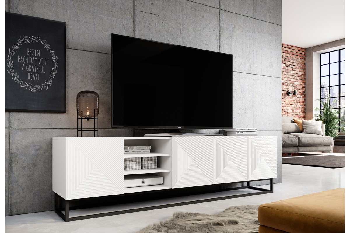 RTV skříňka Asha 200 cm s výklenkem na kovových nohách - bílý mat, Šířka: 200, Výška: 56, Hloubka: 40, Výška nožek: 16
