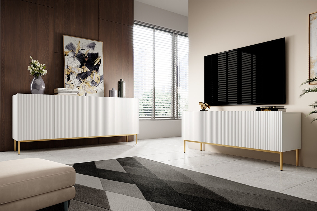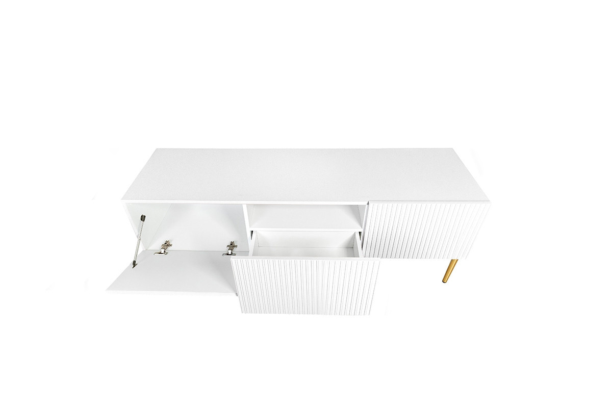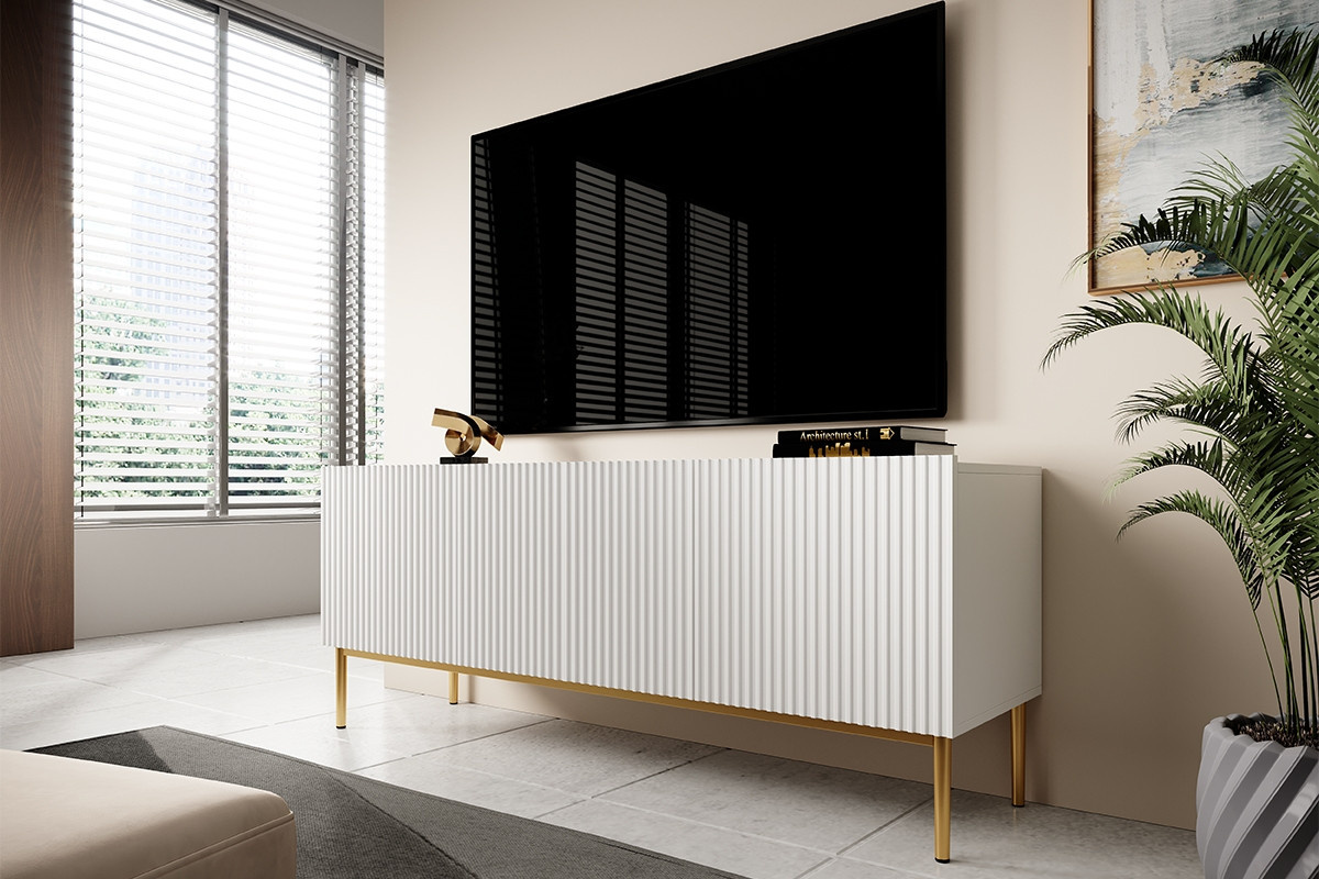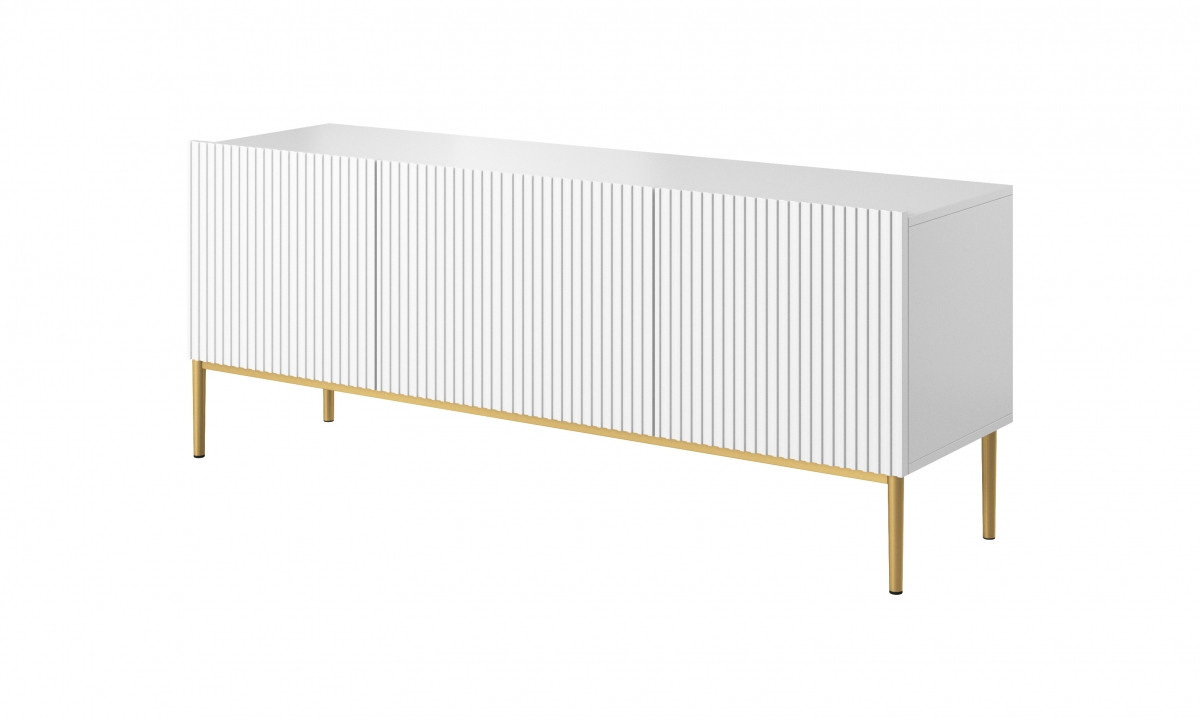 RTV skříň Nicole 150 cm - bílá matná / zlaté nožičky, šířka: 150, výška: 53, hloubka: 45, výška nožiček: 20