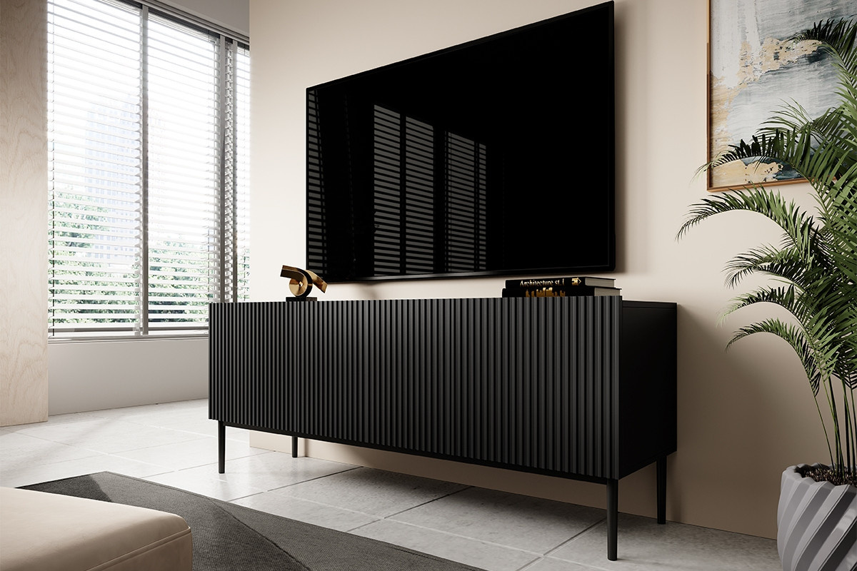 Skříňka RTV Nicole 150 cm - černý mat / černé nožky, Šířka: 150, Výška: 53, Hloubka: 45, Výška nožek: 20