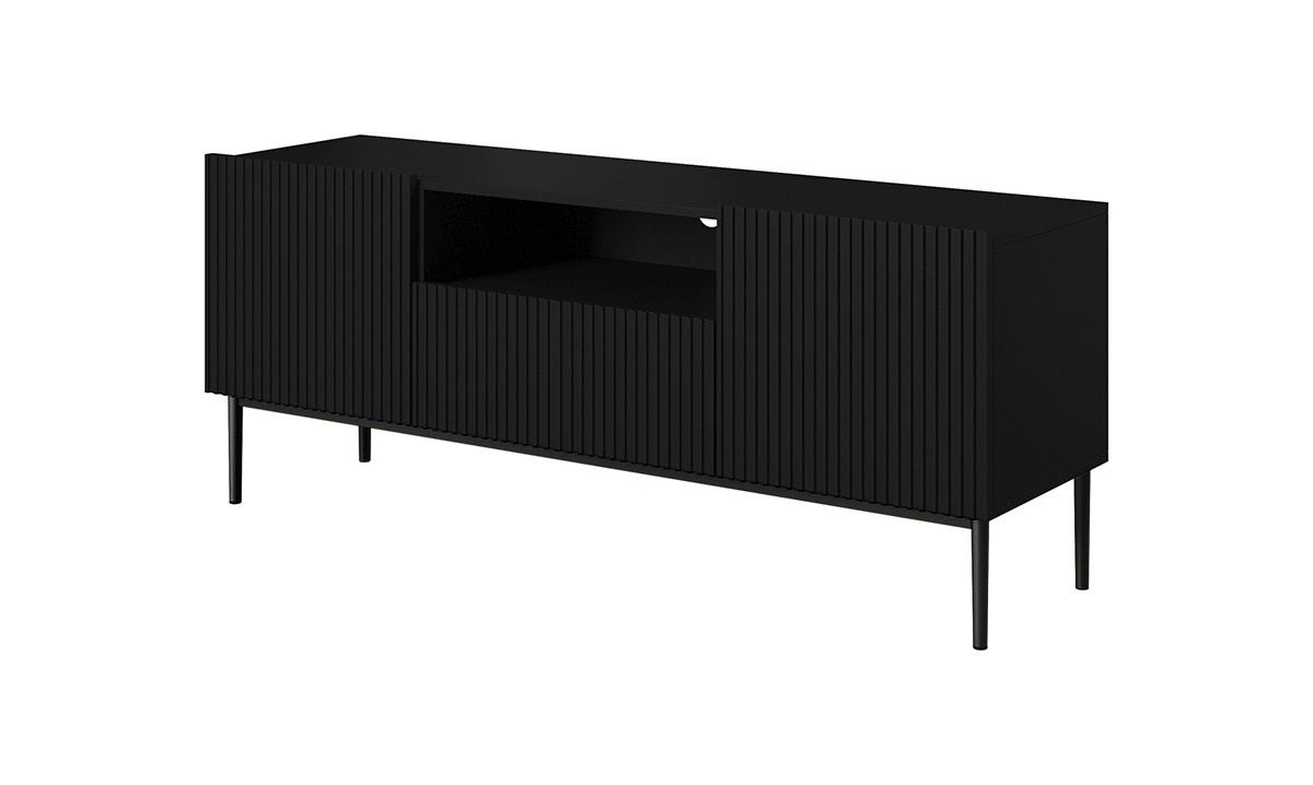 RTV skříňka 150 cm Nicole s rýhovaným čelem a zásuvkou - černý mat / černé nožky, Šířka: 150, Výška: 60, Hloubka: 45, Výška nožek: 20