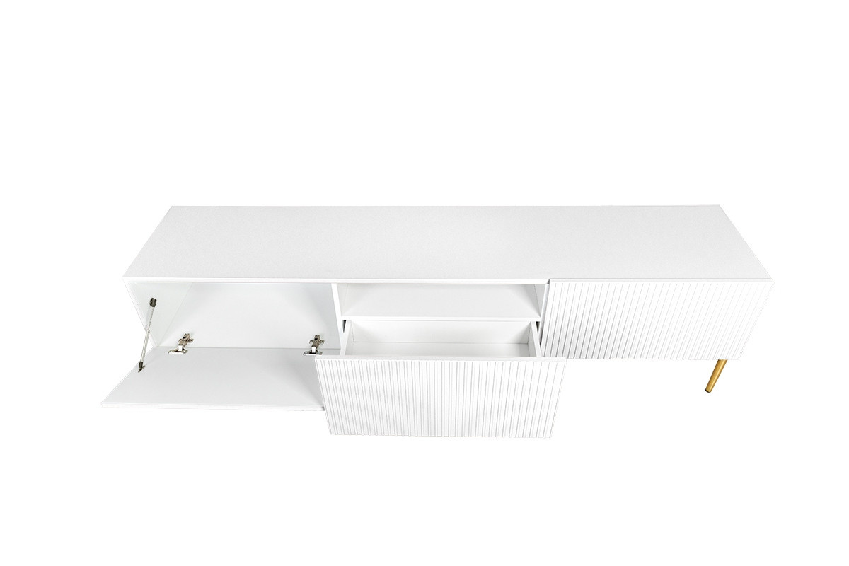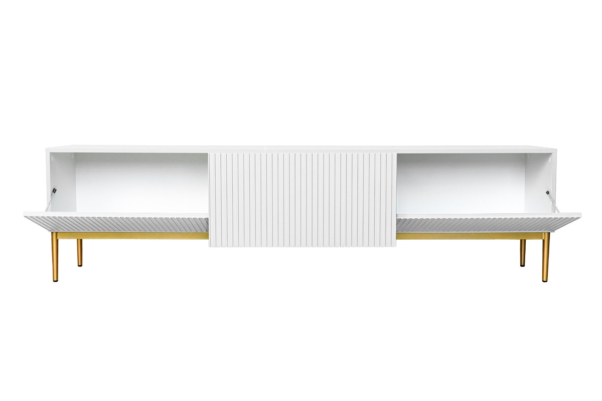 RTV skříňka 200 cm Nicole s drážkovaným čelem a zásuvkou - bílá matná / zlaté nohy, šířka: 200, výška: 53, hloubka: 45, výška nohou: 20