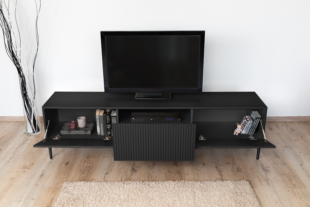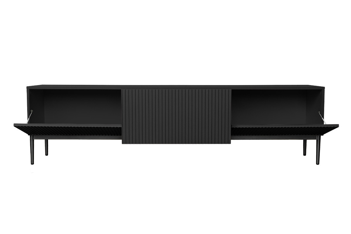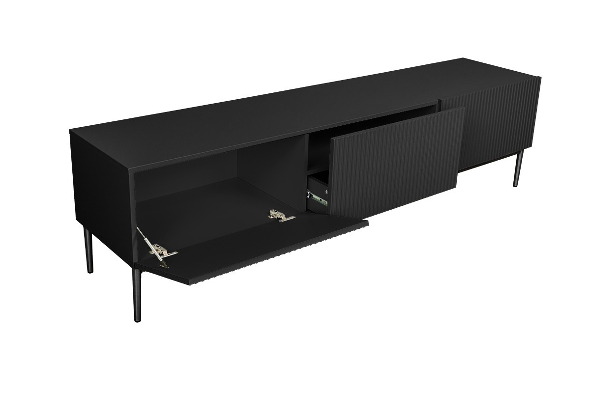 RTV skříňka 200 cm Nicole s rýhovaným čelem a zásuvkou - černý mat / černé nožky, Šířka: 200, Výška: 53, Hloubka: 45, Výška nožek: 20