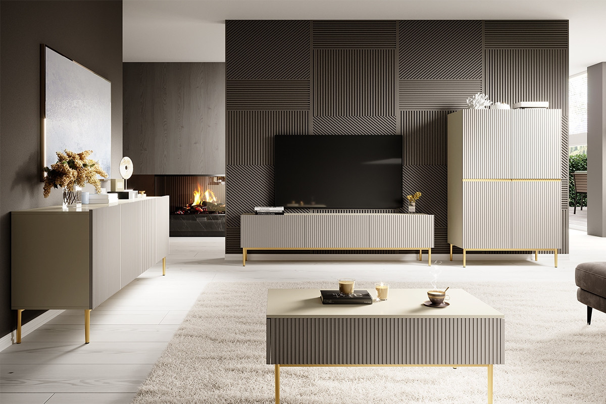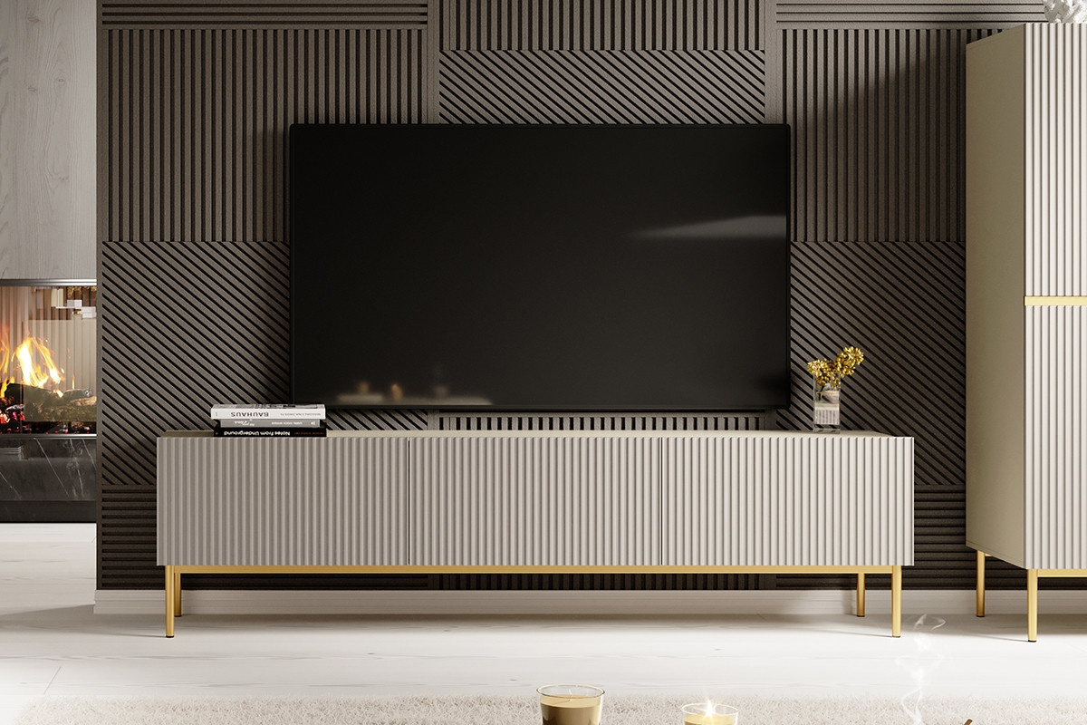 RTV skříň Nicole 200 cm - kašmír / zlaté nožičky, Šířka: 200, Výška: 53, Hloubka: 45, Výška nožiček: 20