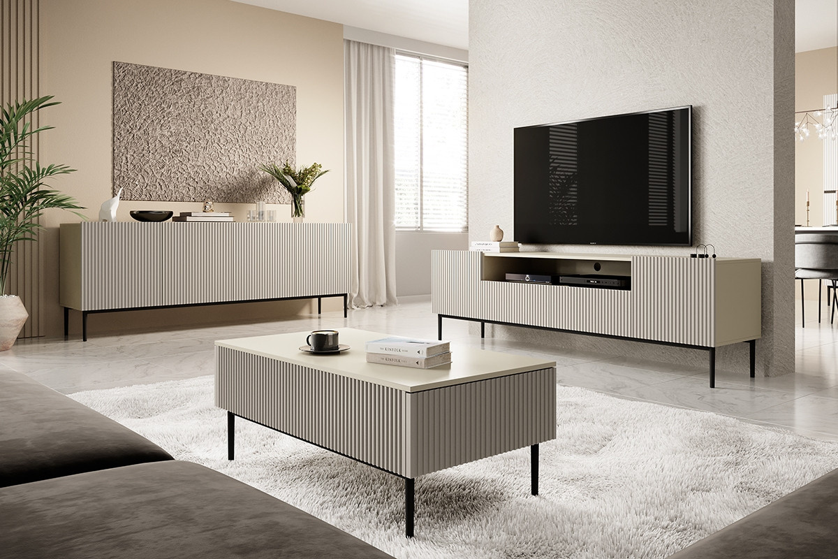 RTV skříň Nicole 200 cm s výklenkem - kašmír / černé nožičky, šířka: 200, výška: 60, hloubka: 45, výška nožiček: 20