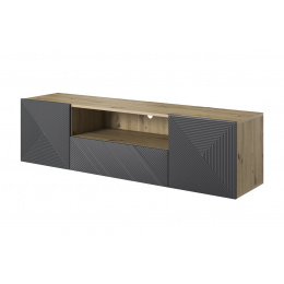 Jste uprostřed zařizování svého obývacího pokoje? Hledáš závěsnou TV skříňku, která promění tvůj interiér a dodá mu úžasný akcent? Věnuj pozornost této nabídce se zajímavými, geometrickými vzory na čelních stranách. Model se skládá ze dvou prostorných skříněk, zásuvky a otevřené přihrádky na potřebné RTV vybavení. Komoda byla vyrobena z vysoce kvalitní laminované desky a MDF. Má velmi stabilní konstrukci. Je propracovaná i v těch nejmenších detailech. Zajisté tedy bude vypadat skvěle po dlouhá léta. Závěsná RTV skříňka 167 cm Asha dvoudveřová se zásuvkou a výklenkem - artisan / rivier stone mat, Šířka: 167, Výška: 44, Hloubka: 40.