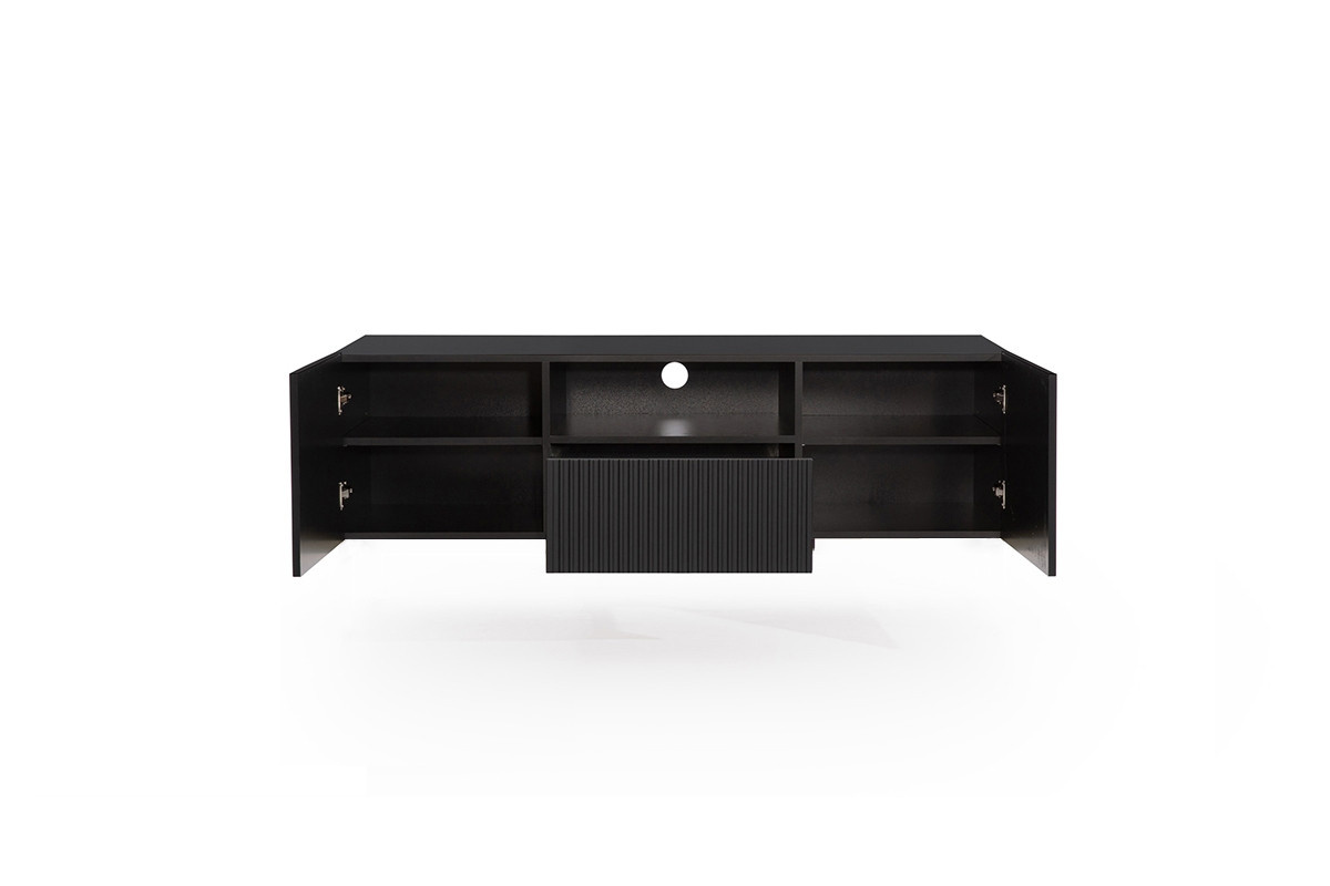 Závěsná TV skříňka Nicole 150 cm s výklenkem - černá / černý mat, Šířka: 150, Výška: 40, Hloubka: 45