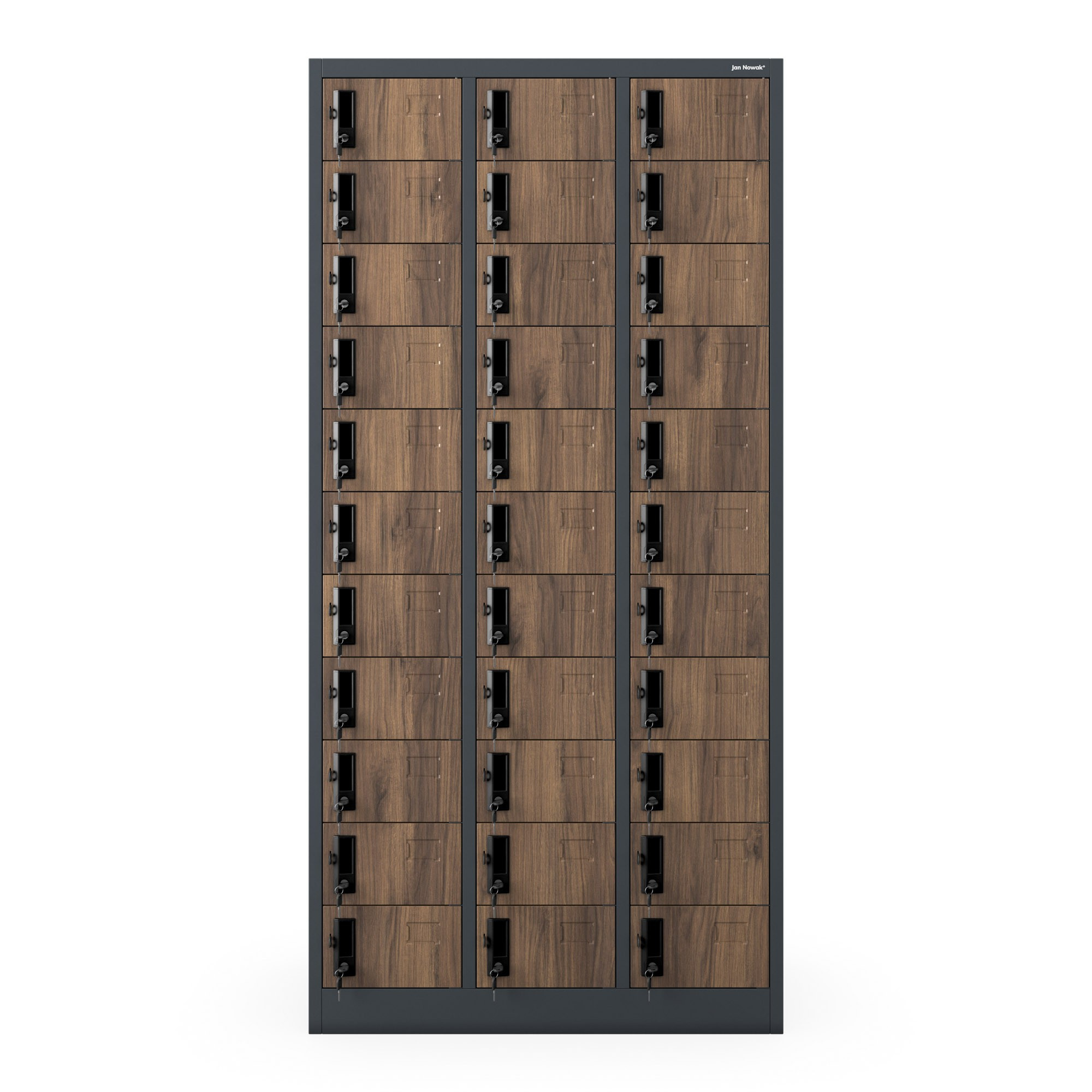 Plechová uzamykatelná šatní skříňka OLIVER, 900 x 1850 x 450 mm, Eco Design: antracitová/ořech