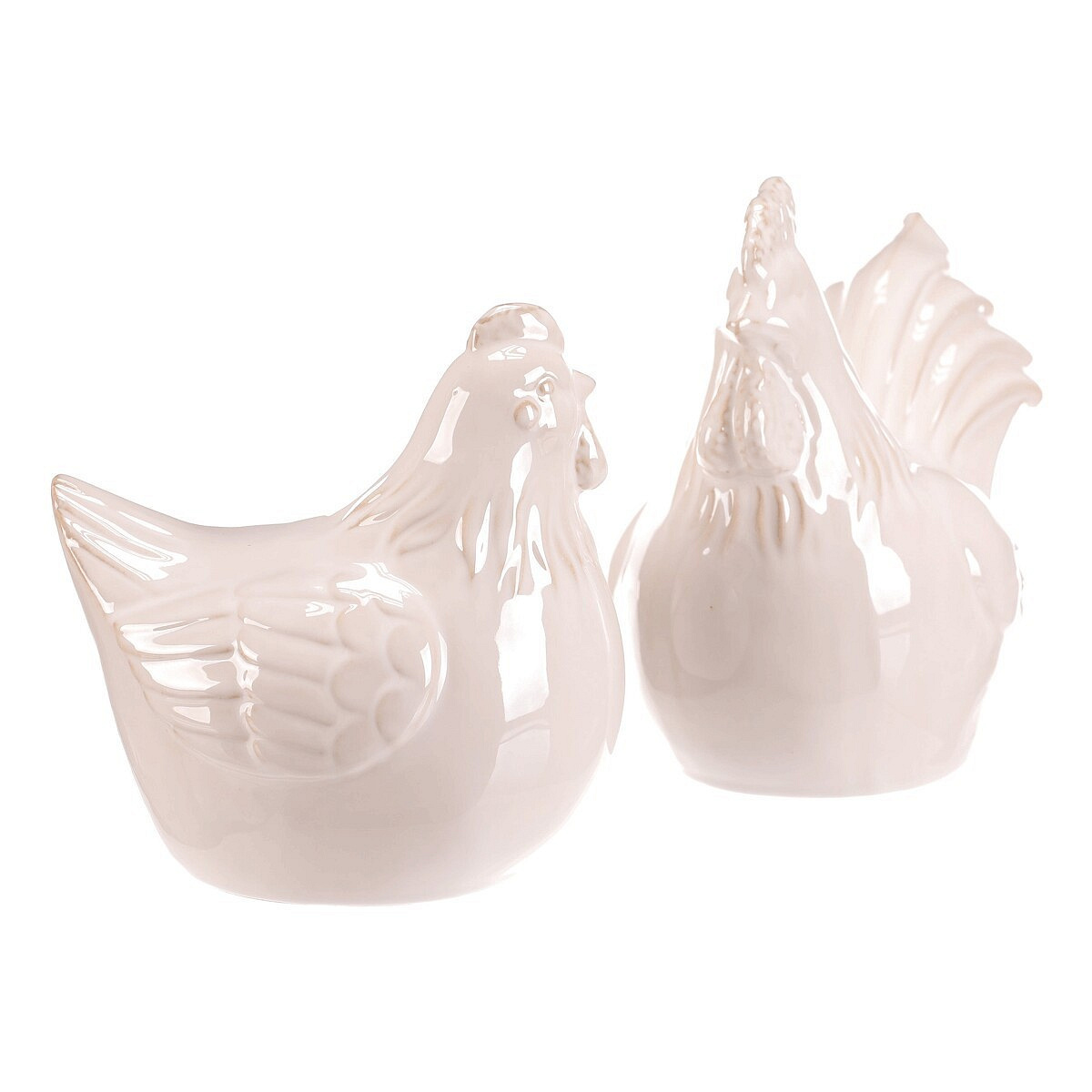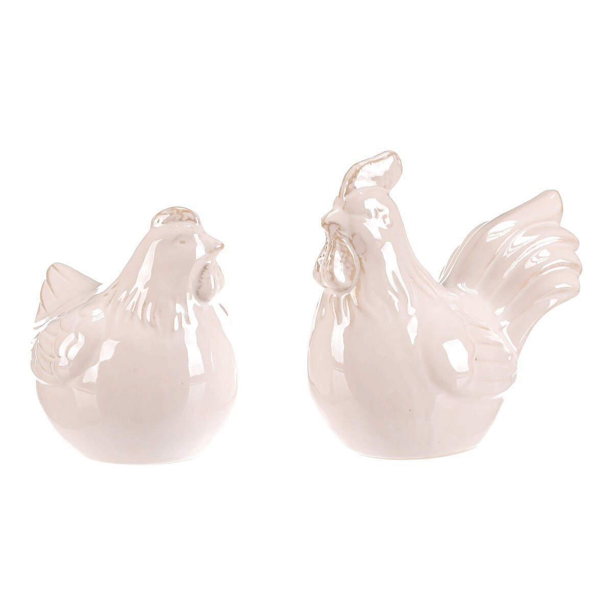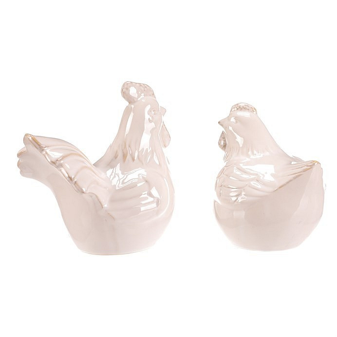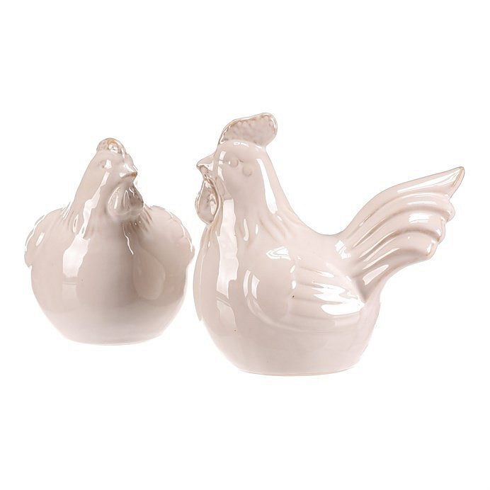 Keramická figurka slepice a kohouta v krémovém odstínu představuje dekorativní doplněk vhodný pro různé interiérové styly. Jemné lesklé provedení podtrhuje detaily peří a tvaru, které věrně napodobují charakteristické znaky těchto zvířat. Velikost S umožňuje umístění na poličku, komodu nebo do vitríny, kde přidá přírodní a klidnou atmosféru. Obě figurky jsou samostatné a lze je kombinovat podle potřeby. Jsou určeny pro vnitřní použití jako stylový dekorativní prvek.