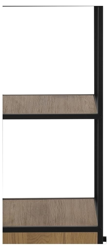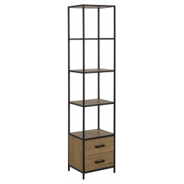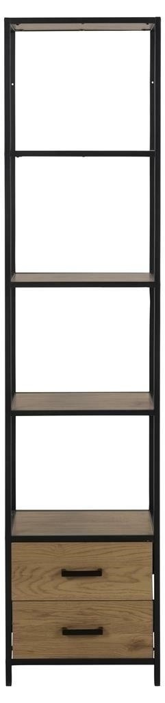 Sloupek Seaford je dalším místem pro uložení knih a fotografií nebo umístění rostlin. Jeho kostra je vyrobena z práškově lakovaného kovu v černé barvě. Má čtyři police z MDF desky s dubovou dýhou a dvě hluboké zásuvky také vyrobené z MDF desky s dýhou. Zásuvky mají jednoduché kovové úchyty v černé barvě. Sloupek stojí na čtyřech stabilních nohách. Tento model se hodí do každé místnosti. Bude skvěle vypadat v interiéru v moderním, industriálním nebo skandinávském stylu. Počet kartonů: 1 Rozměry kartonů: 190x37,5x11cm Hmotnost kartonů: 25,7kg