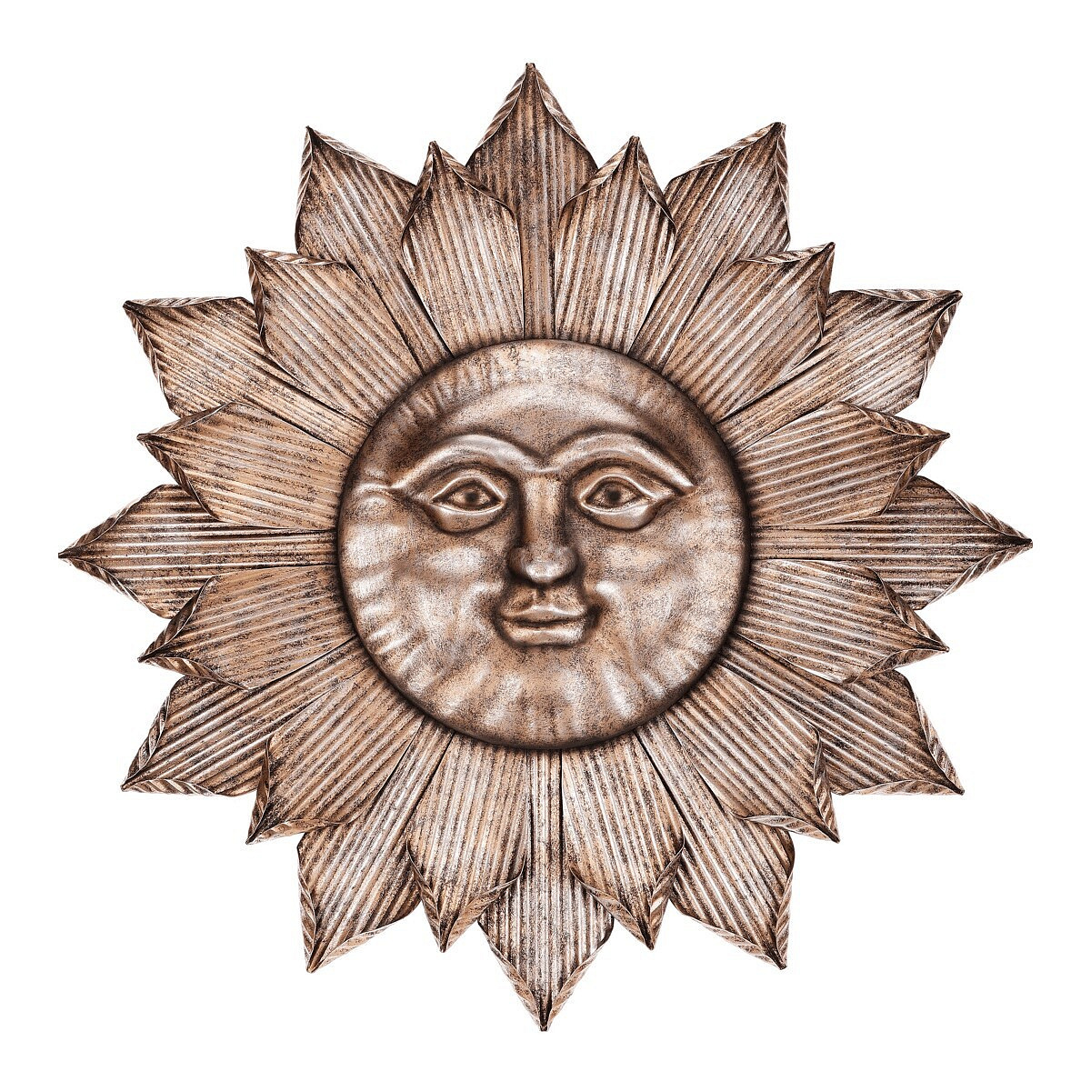 Kovová dekorace na zeď v podobě slunce s obličejem v šedém provedení, přidá vašemu prostoru originální a uklidňující prvek. Decentní barva a propracované detaily z ní dělají ideální doplněk pro interiéry i venkovní prostory, který vám přinese harmonii a pohodu.