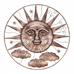 Slunce s obláčky - kovová nástěnná dekorace, měděná