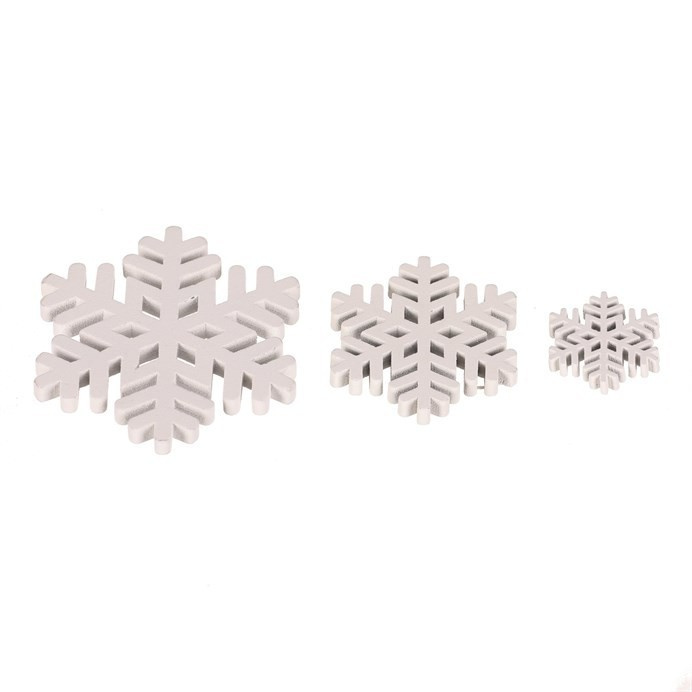 Sněhové vločky - dřevo, mix 3 velikostí, bílé, cena za balení (18 ks)