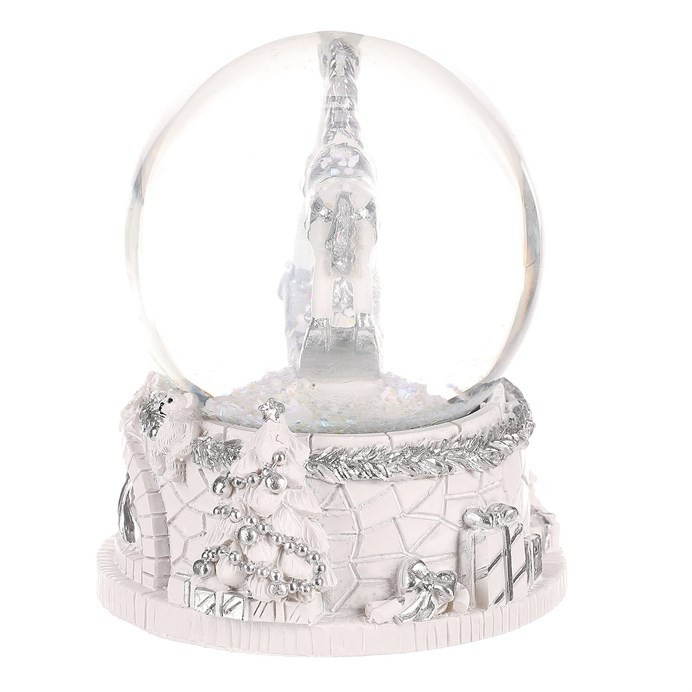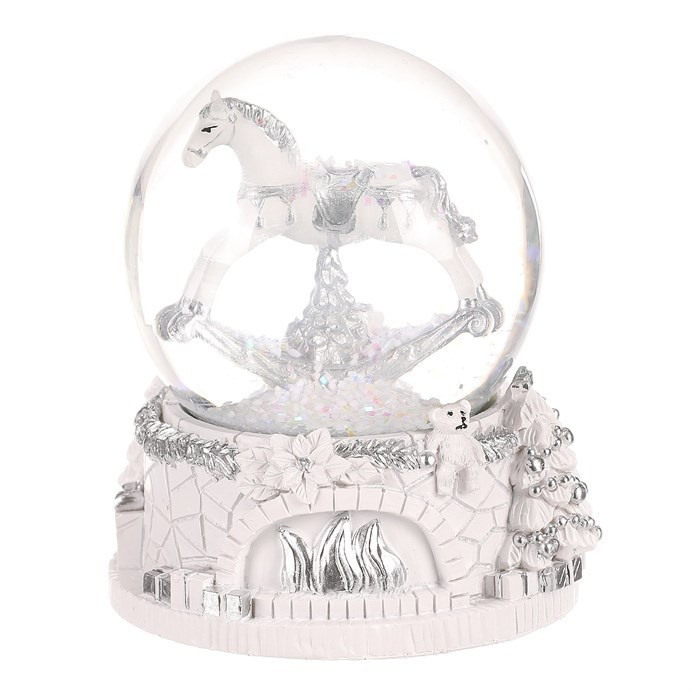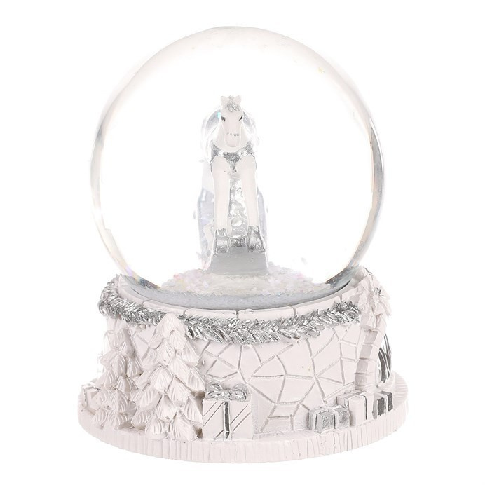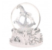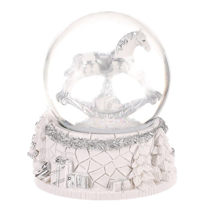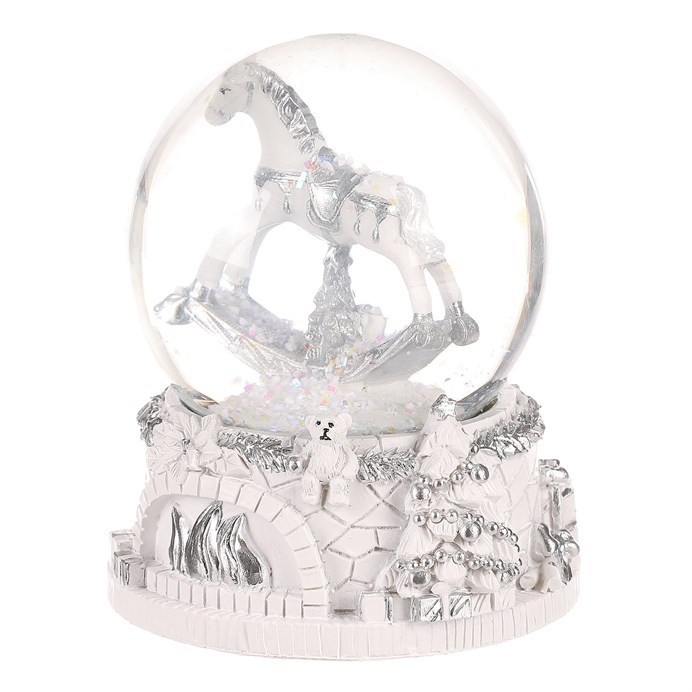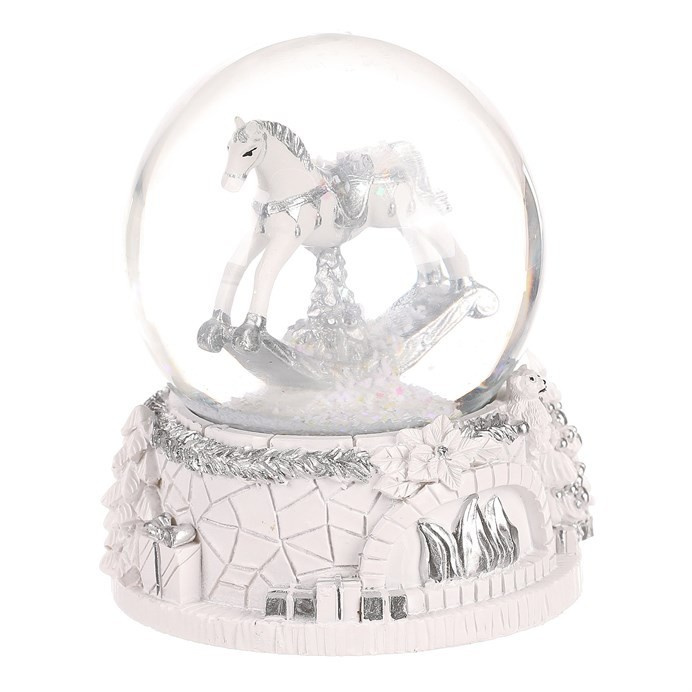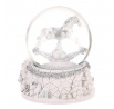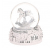 Sněžítko s houpacím koníkem - polyresin, malé, bílo-stříbrné