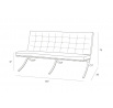 Jedná se o pohovku navrženou v roce 1929, která vznikla na zakázku a byla umístěna v německém pavilonu na výstavě v Barceloně.Charakteristicky ohnutý do tvaru písmene "X" chromovaný podstavec a čtvercově prošívaná přírodní kůže jsou nejcharakterističtějšími rysy tohoto produktu. Celá kolekce Barcelona zahrnuje křeslo s podnožkou, pohovky, lavici, lehátko a stolek.,Sedačka je vyrobena z přírodní kůže.Prezentovaný produkt je inspirován designem Barcelona.,