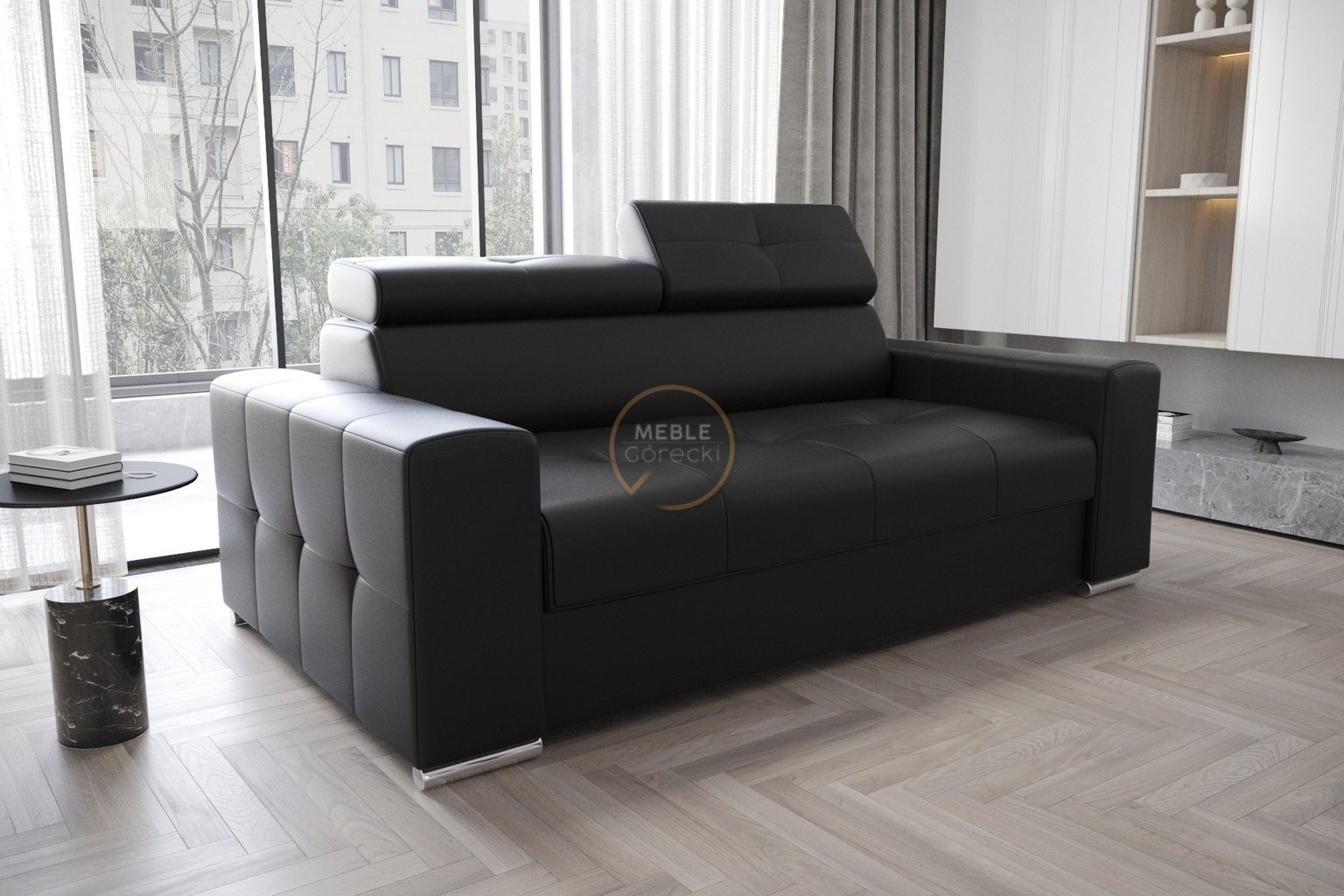 Sofa MARGO II 195 cm - přírodní kůže - černá kůže
