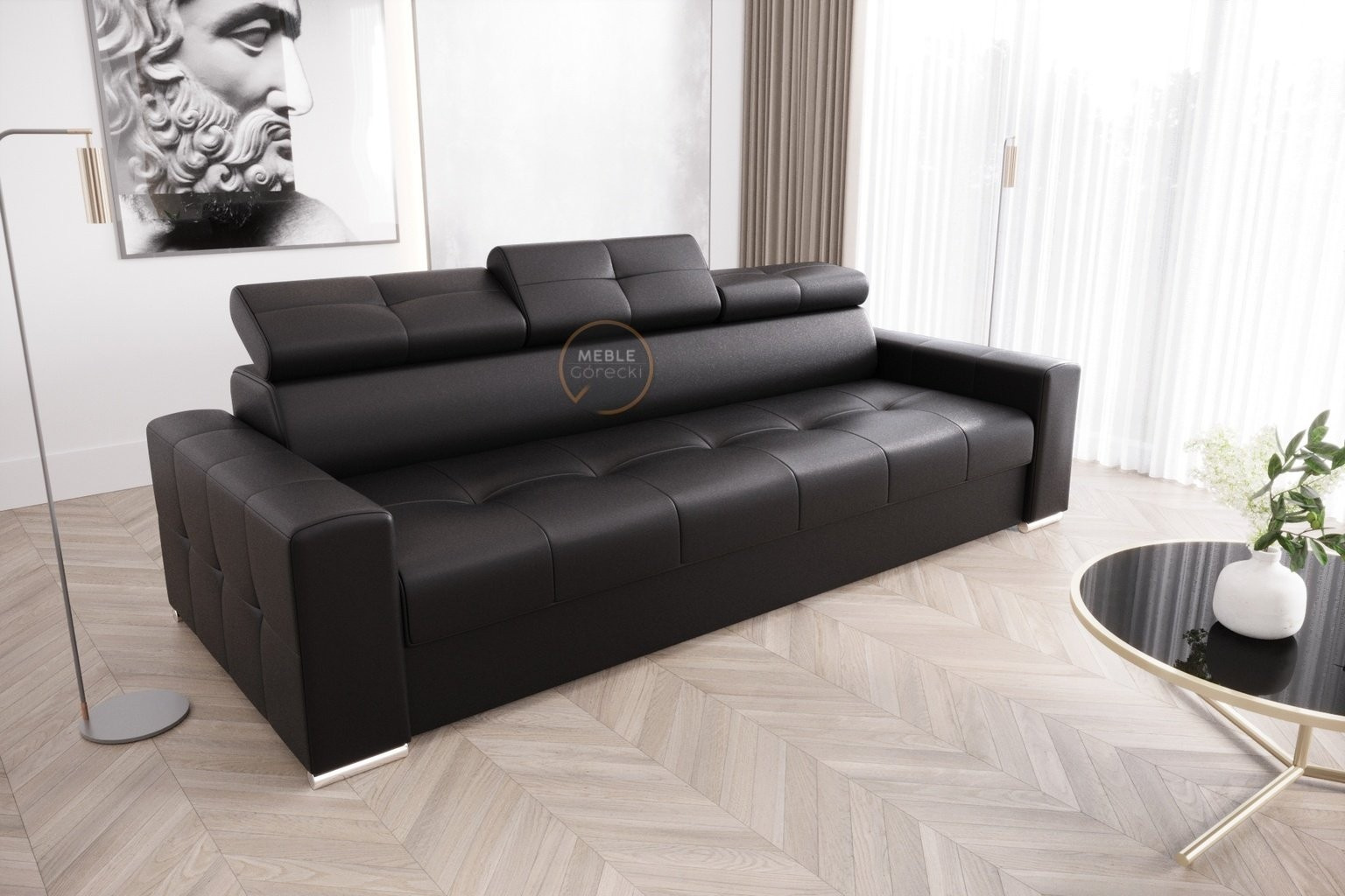 Sofa MARGO III 273 cm přírodní kůže - černá kůže