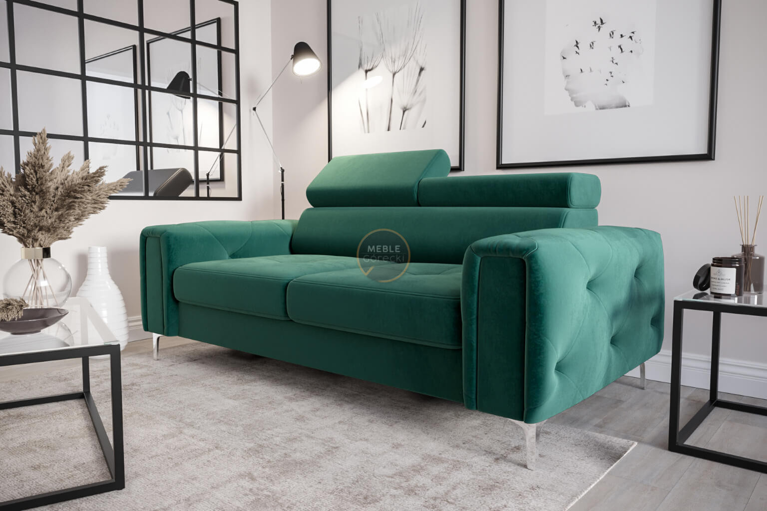Kolekce čalouněného nábytku Orion je něco, co nikde jinde nenajdete! Charakteristickým prvkem jsou krásně zdobené, prošívané boky ve stylu glamour. Kromě estetických prvků stojí za to věnovat pozornost dokončení v podobě nastavitelných opěrek hlavy, které usnadní přizpůsobení výšky opěradla tak, aby byla pro vás ideální. Vysoké 13 cm kovové nohy podtrhují celek a dodávají konstrukci lehkost.