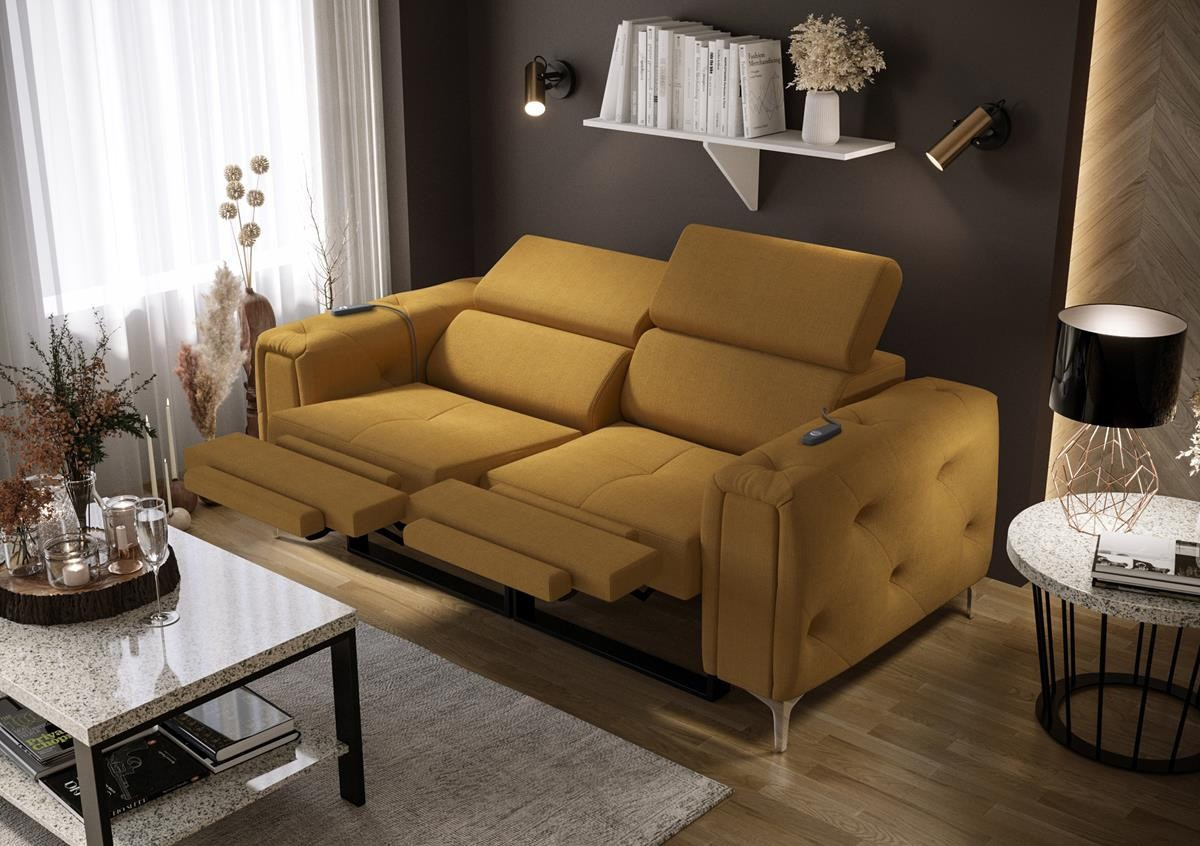 Kolekce čalouněného nábytku Orion je něco, co nikde jinde nenajdete! Charakteristickým prvkem jsou krásně zdobené, prošívané boky ve stylu glamour. Kromě estetických prvků stojí za to věnovat pozornost dokončení v podobě nastavitelných opěrek hlavy, které usnadní přizpůsobení výšky opěradla tak, aby byla pro vás ideální. Vysoké 13 cm kovové nohy podtrhují celek a dodávají konstrukci lehkost.