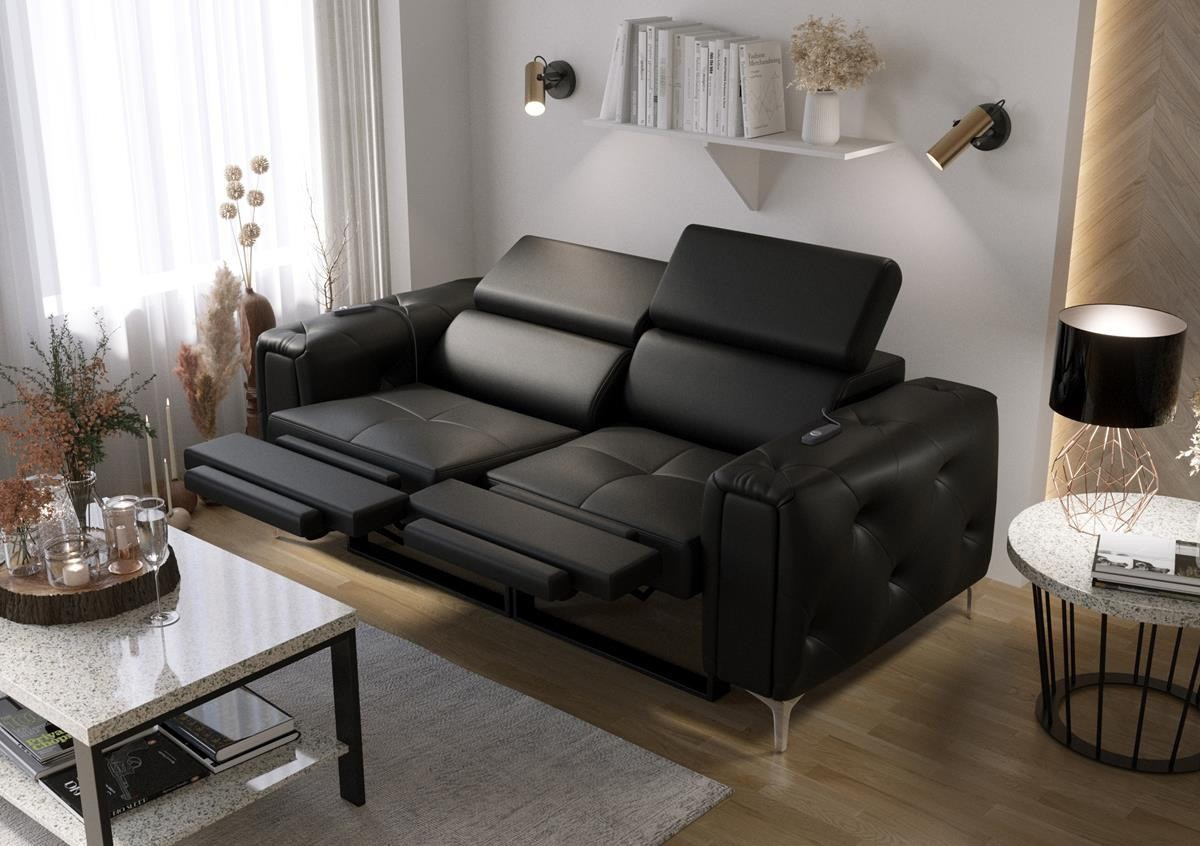 Sofa ORION II , relax 190 cm přírodní kůže - černá kůže
