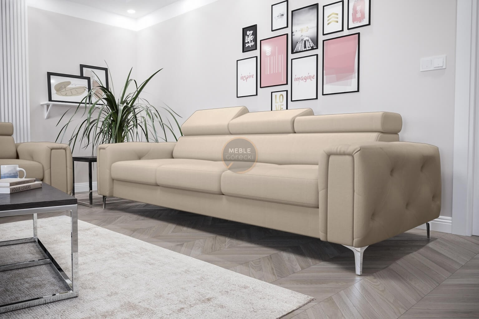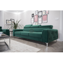 Kolekce čalouněného nábytku Orion je něco, co nikde jinde nenajdete! Charakteristickým prvkem jsou krásně zdobené, prošívané boky ve stylu glamour. Kromě estetických prvků stojí za to věnovat pozornost dokončení v podobě nastavitelných opěrek hlavy, které usnadní přizpůsobení výšky opěradla tak, aby byla pro vás ideální. Vysoké 13 cm kovové nohy podtrhují celek a dodávají konstrukci lehkost.