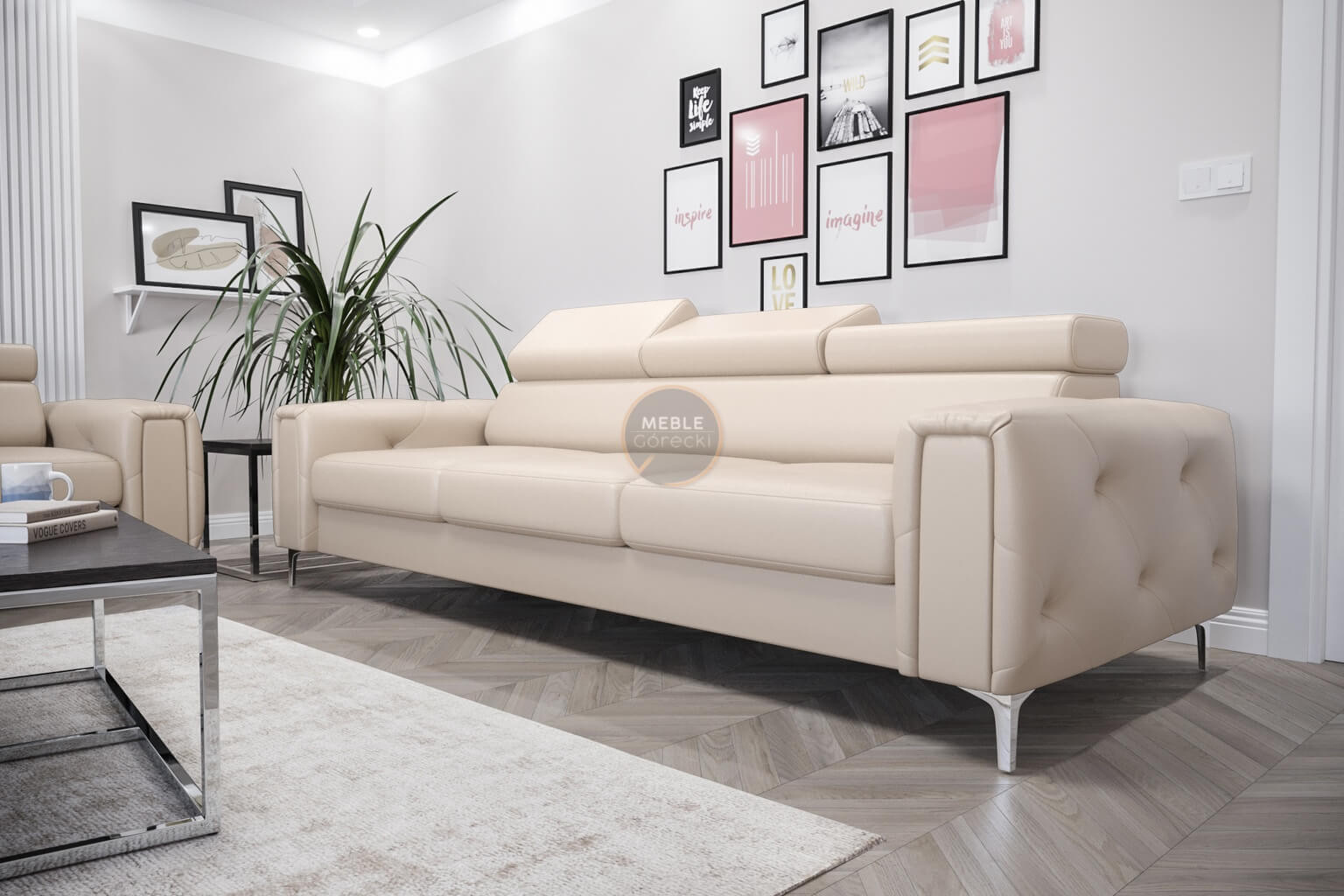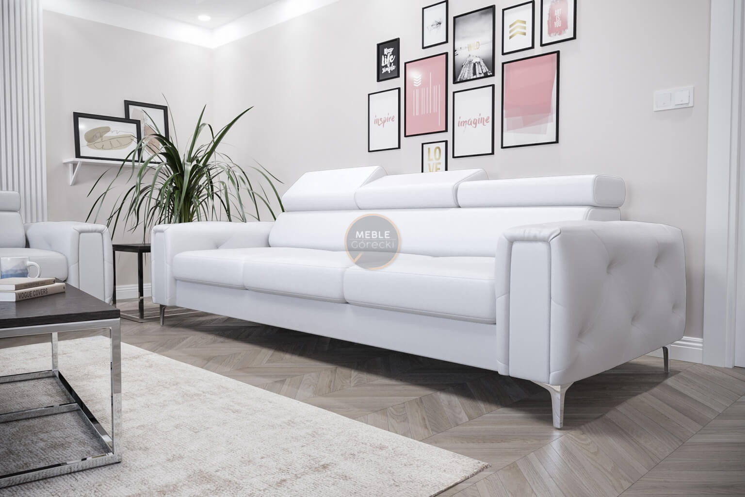 Kolekce čalouněného nábytku Orion je něco, co nikde jinde nenajdete! Charakteristickým prvkem jsou krásně zdobené, prošívané boky ve stylu glamour. Kromě estetických prvků stojí za to věnovat pozornost dokončení v podobě nastavitelných opěrek hlavy, které usnadní přizpůsobení výšky opěradla tak, aby byla pro vás ideální. Vysoké 13 cm kovové nohy podtrhují celek a dodávají konstrukci lehkost.