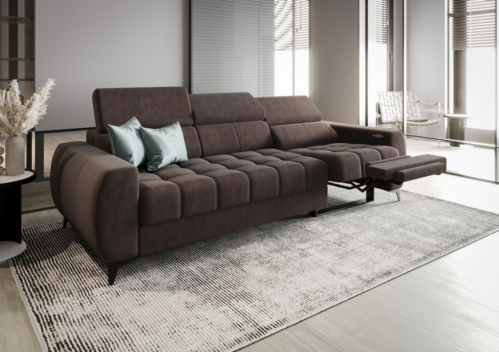 Sofa PORTO III , relax 263 cm - hnědá , pravá strana