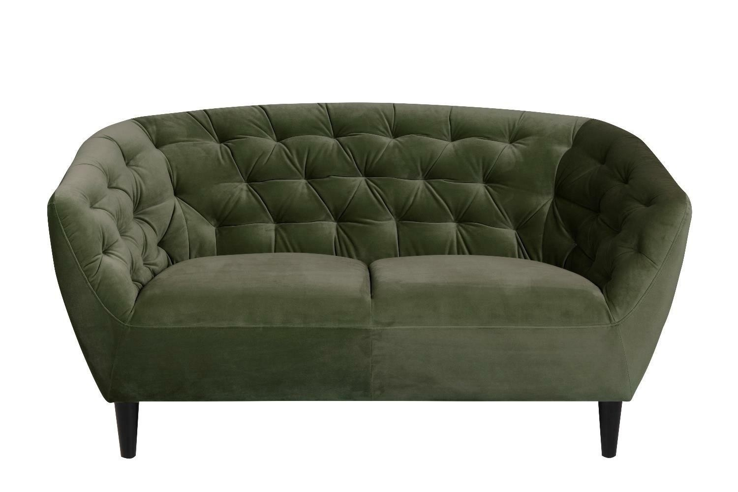 Sofa Ria pro 2 osoby je výjimečný, elegantní kus nábytku do obývacího pokoje, hotelové haly nebo kavárenského prostoru. Sedák čalouněný sametovou látkou VIC v zelené barvě má prošívání na opěradle, které dodává eleganci a třídu. Nohy byly vyrobeny z pevného kaučukového dřeva, natřené na černo. Jednoduchá forma a měkké tvary zajišťují, že se pohovka Ria hodí do každého interiéru. Výška sedáku: 46 cm Šířka sedáku: 112 cm Hloubka sedáku: 55 cm Výška područek: 42 cm