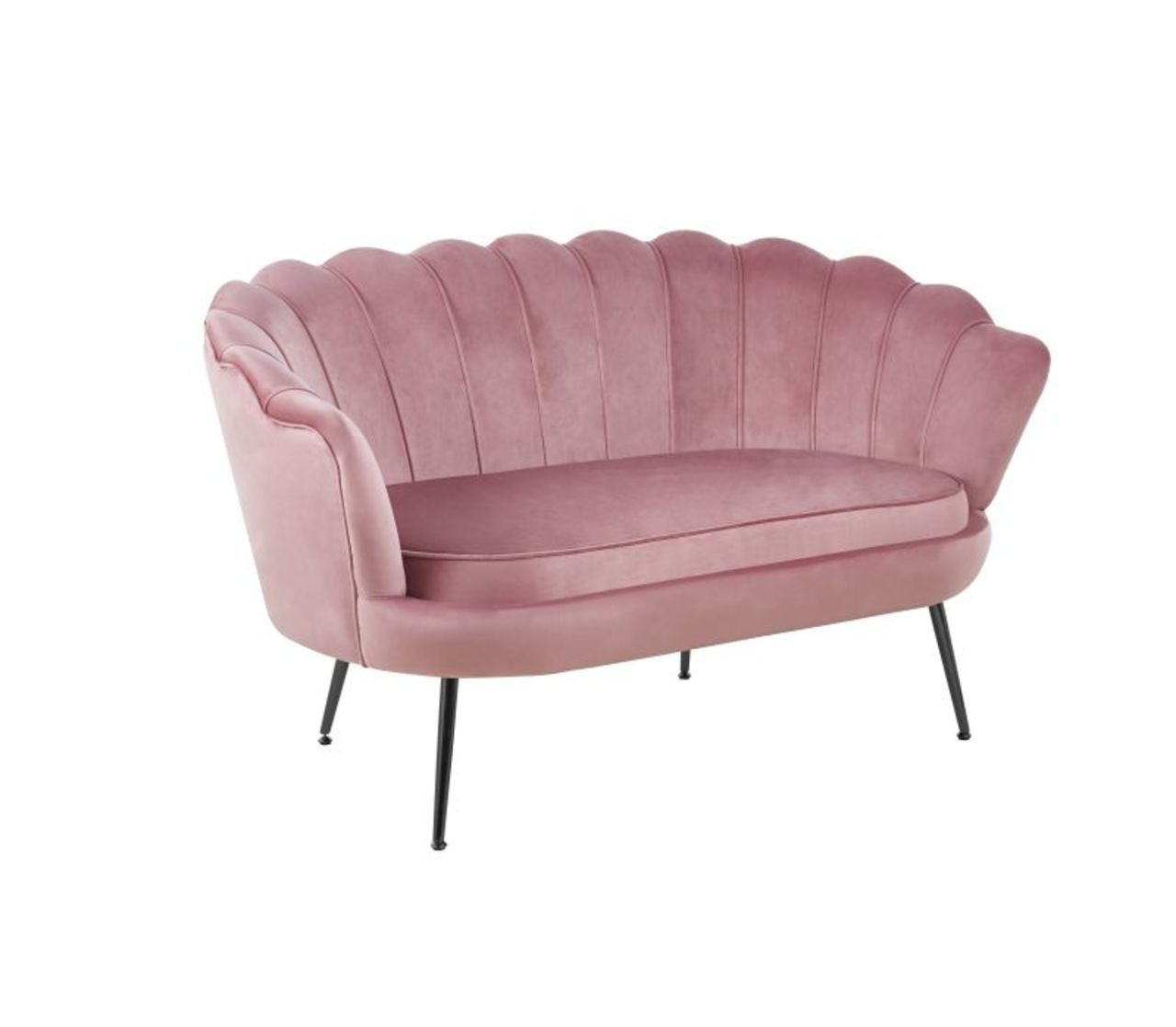 Rozměry: - šířka sedáku: 106 cm - celková šířka: 138 cm - výška sedáku: 44 cm - celková výška: 79 cm - hloubka sedáku: 53 cm - celková hloubka: 74 cm Materiál - čalounění: samet - rám: práškově lakovaný kov Barva: - sedák: růžová - rám: černá
