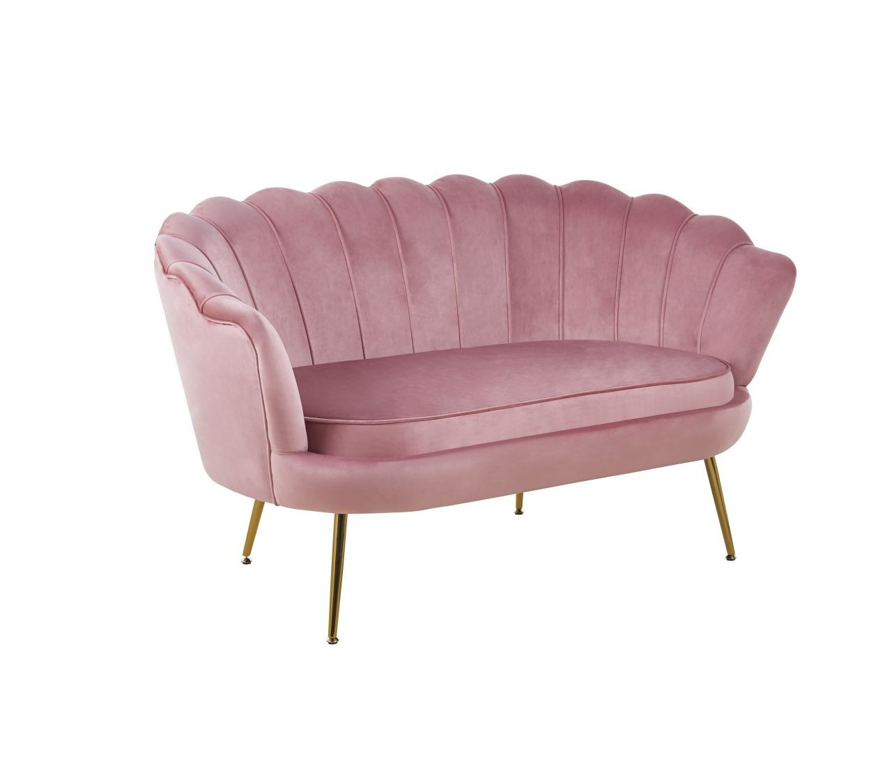 Rozměry: - šířka sedáku: 106 cm - celková šířka: 138 cm - výška sedáku: 44 cm - celková výška: 79 cm - hloubka sedáku: 53 cm - celková hloubka: 74 cm Materiál - čalounění: samet - rám: chromovaný kov Barva: - sedák: růžový - rám: zlatý