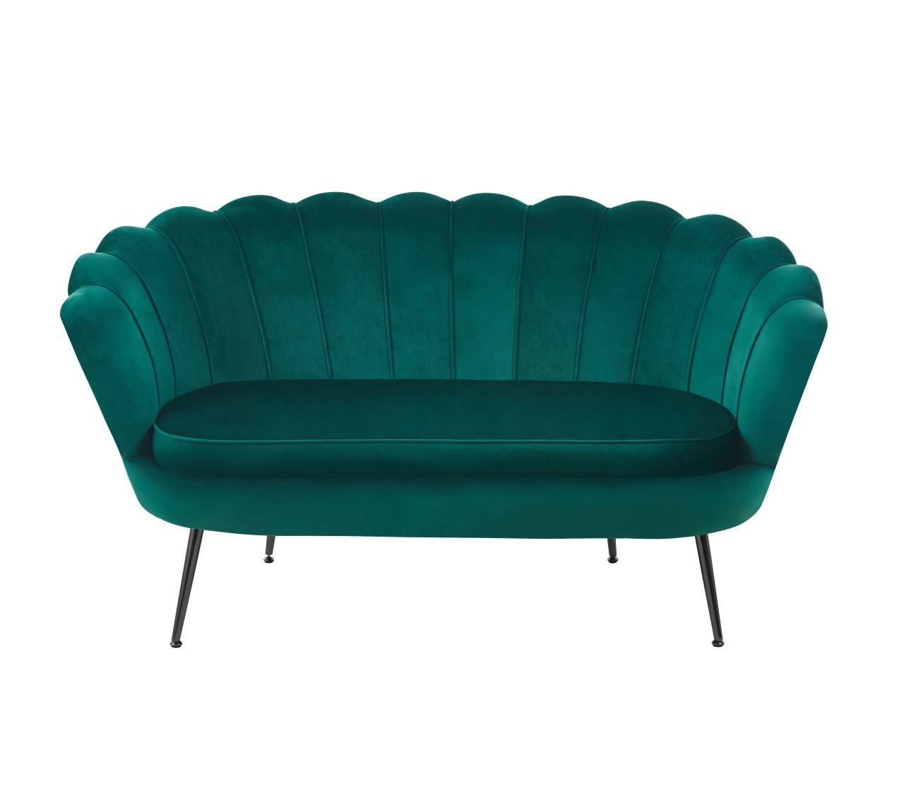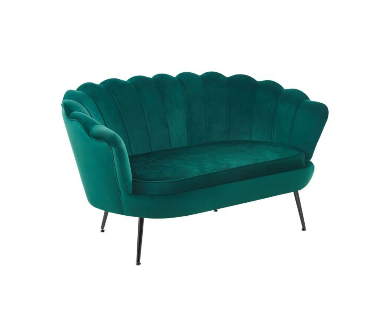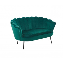 Rozměry: - šířka sedáku: 106 cm - celková šířka: 138 cm - výška sedáku: 44 cm - celková výška: 79 cm - hloubka sedáku: 53 cm - celková hloubka: 74 cm Materiál - čalounění: samet - rám: práškově lakovaný kov Barva: - sedák: zelená - rám: černá