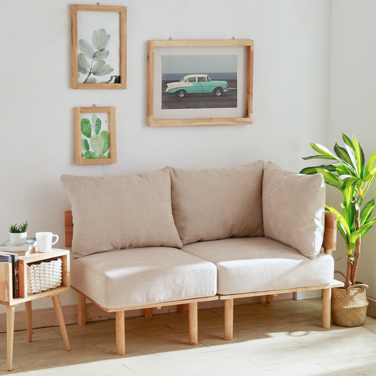 Pohovka SERI se dokonale hodí do minimalistických, skandinávských a boho stylových prostor. Kombinace přírodního dřeva a béžové barvy vypadá velmi stylově a přináší do místnosti nádech elegance. Můžete ho použít v obývacím pokoji, snadno přizpůsobíte počet prvků velikosti místnosti.