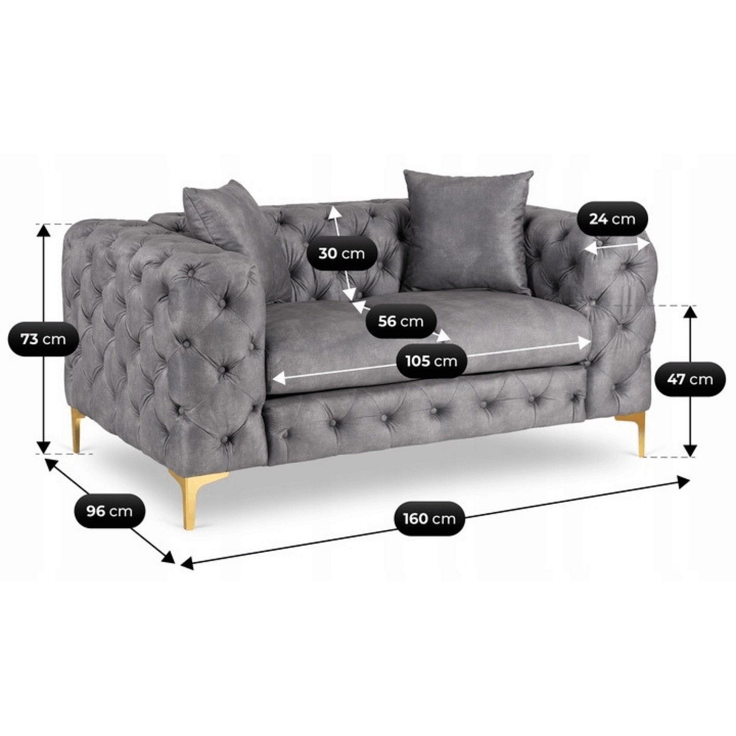 Pohovka SORRENTO 2S Dvoumístná Šedá Sametová