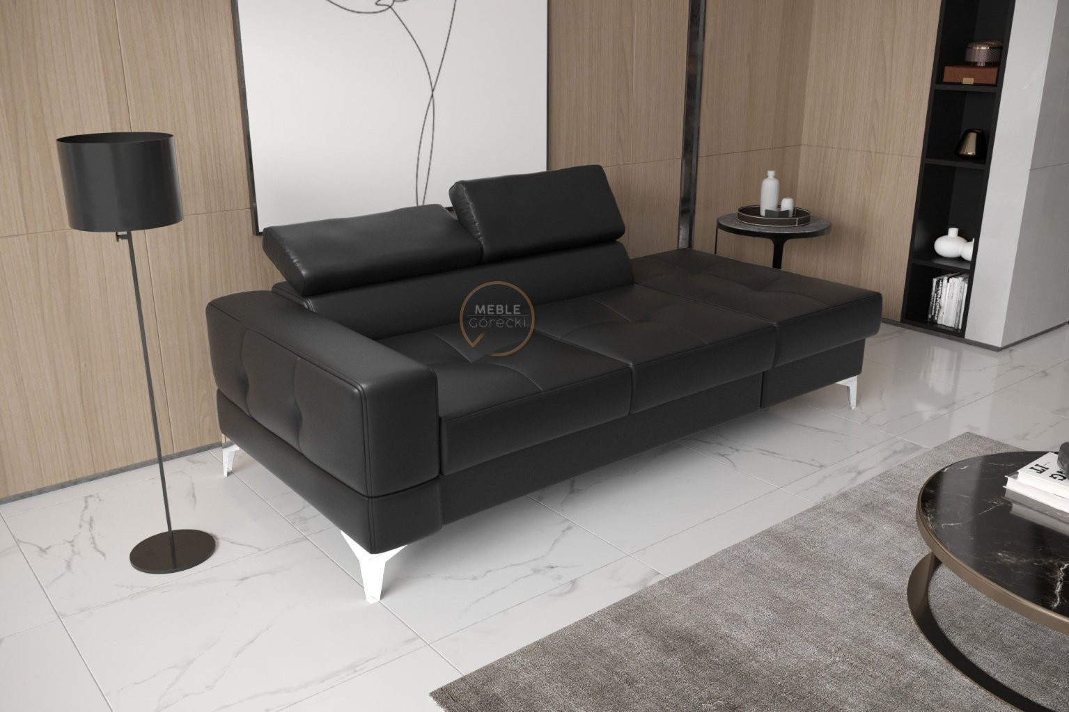 Sofa TOSCANIA II lenoška 205 cm přírodní kůže - černá kůže, pravá strana