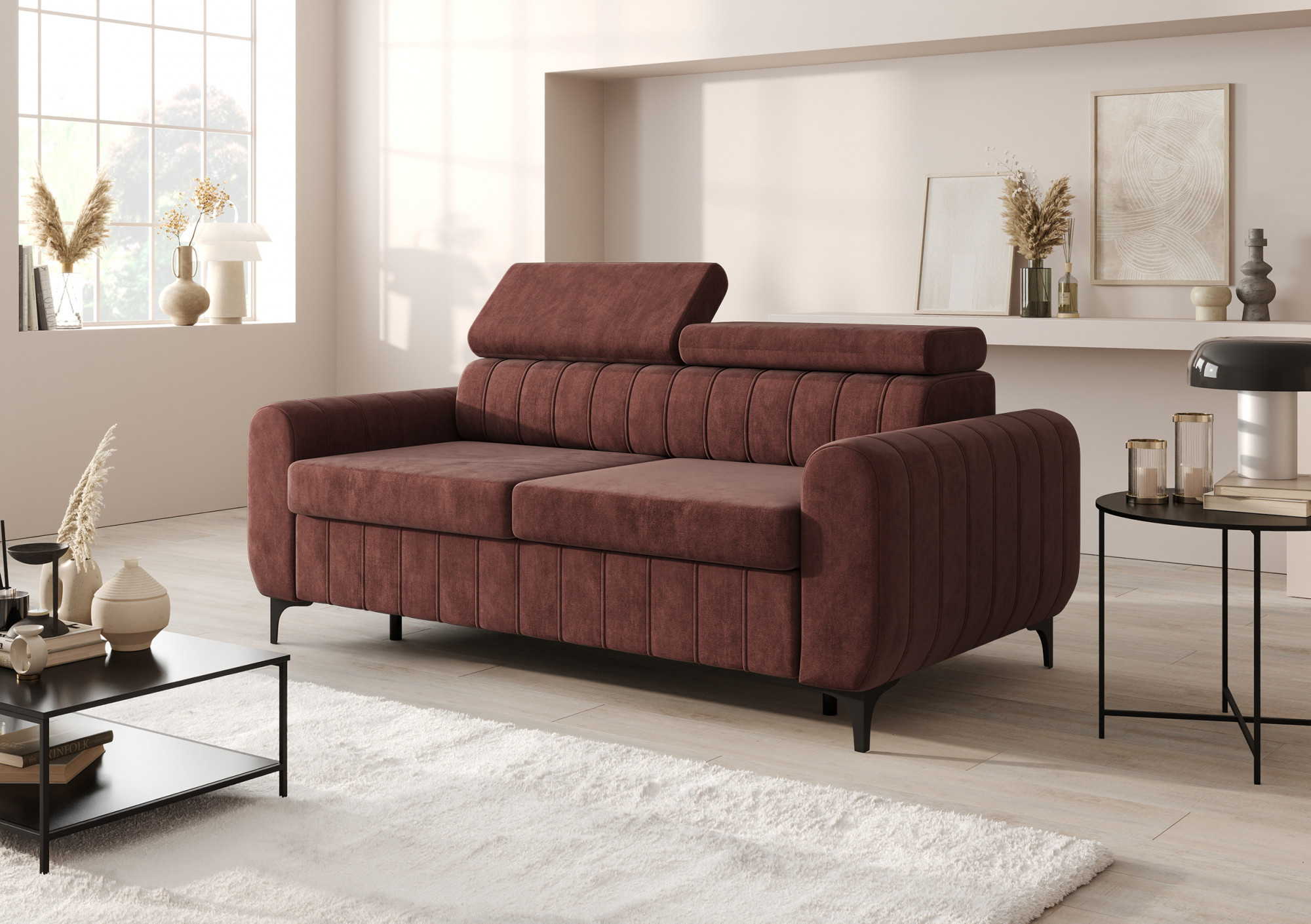 Sofa Zoya s italským rámem je kompaktní pohovka s funkcí každodenního spaní. Ideální pro menší místnosti, kde je potřeba jak místo k sezení, tak prostor na spaní. Během dne ozdobí váš obývací pokoj svým elegantním vzhledem a v případě potřeby se stane pohodlnou postelí.