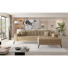 Solange je originální, vkusná a mimořádně měkká rohová souprava, která přináší do interiéru, ve kterém se nachází, závan svěžesti a luxusu. Tento kus nábytku s rozměry 292 x 196 x 80 cm zaručuje maximální pohodlí pro celou rodinu k odpočinku jak během dne, tak v noci, protože je vybaven funkcí spaní s plochou 210 x 126 cm. Existuje také mechanismus delfín, který pomáhá snadno rozložit kus nábytku do požadované polohy. Hluboká sedadla s dlouhou otomanou, vyplněná vlnovou pružinou a pěnou T30, umožňují nejen udržovat správné držení těla, ale také díky nim je náš nábytek odolný vůči deformacím. Rohová rozkládací pohovka je k dispozici v široké škále barev, což vám poskytuje mnoho možností, jak si vybrat kus nábytku a zařídit obývací pokoj ve vašem vlastním individuálním stylu.