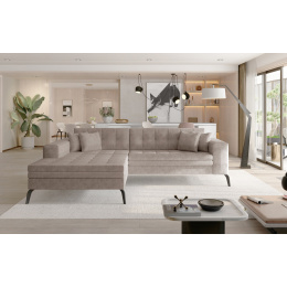 Solange je originální, vkusná a mimořádně měkká rohová souprava, která přináší do interiéru, ve kterém se nachází, závan svěžesti a luxusu. Tento kus nábytku s rozměry 292 x 196 x 80 cm zaručuje maximální pohodlí pro celou rodinu k odpočinku jak během dne, tak v noci, protože je vybaven funkcí spaní s plochou 210 x 126 cm. Existuje také mechanismus delfín, který pomáhá snadno rozložit kus nábytku do požadované polohy. Hluboká sedadla s dlouhou otomanou, vyplněná vlnovou pružinou a pěnou T30, umožňují nejen udržovat správné držení těla, ale také díky nim je náš nábytek odolný vůči deformacím. Rohová rozkládací pohovka je k dispozici v široké škále barev, což vám poskytuje mnoho možností, jak si vybrat kus nábytku a zařídit obývací pokoj ve vašem vlastním individuálním stylu.