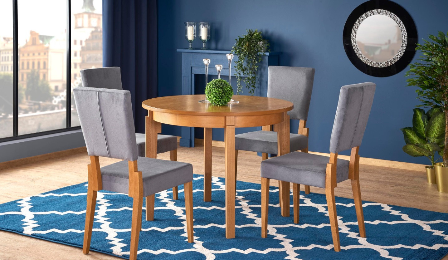 Jídelní stůl SORBUS je vyroben z kvalitního MDF materiálu v kombinaci s pevným dřevem, což zajišťuje jeho stabilitu a odolnost. Povrchová úprava v medovém dubu dodává stolu přirozený a teplý vzhled, který přispívá k příjemné atmosféře při každém jídle.
