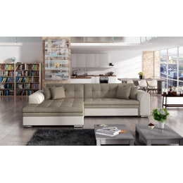 Rohová sedací souprava SORENTO je vyrobena z kvalitních materiálů. Konstrukce sedací soupravy je vyrobena z kombinace dřeva a dřevotřísky. Sedací část je vyrobena v kombinaci polyuretanové pěny T3040 + T2542 a vlnitých pružin. Na opěru sedací soupravy je použita polyuretanová pěna T2542. Sedací souprava je rozkládací pomocí rozkladu typu Delfín.