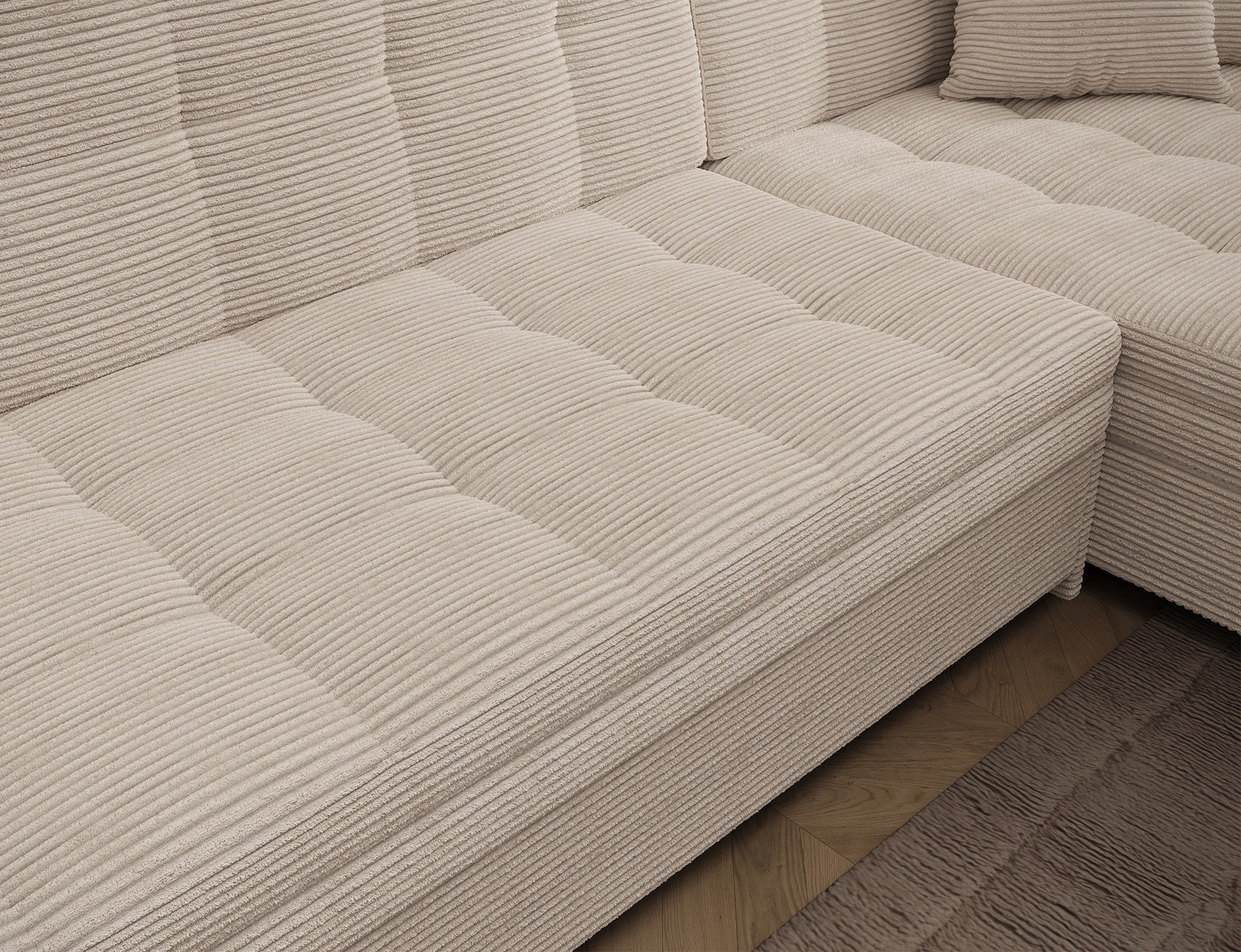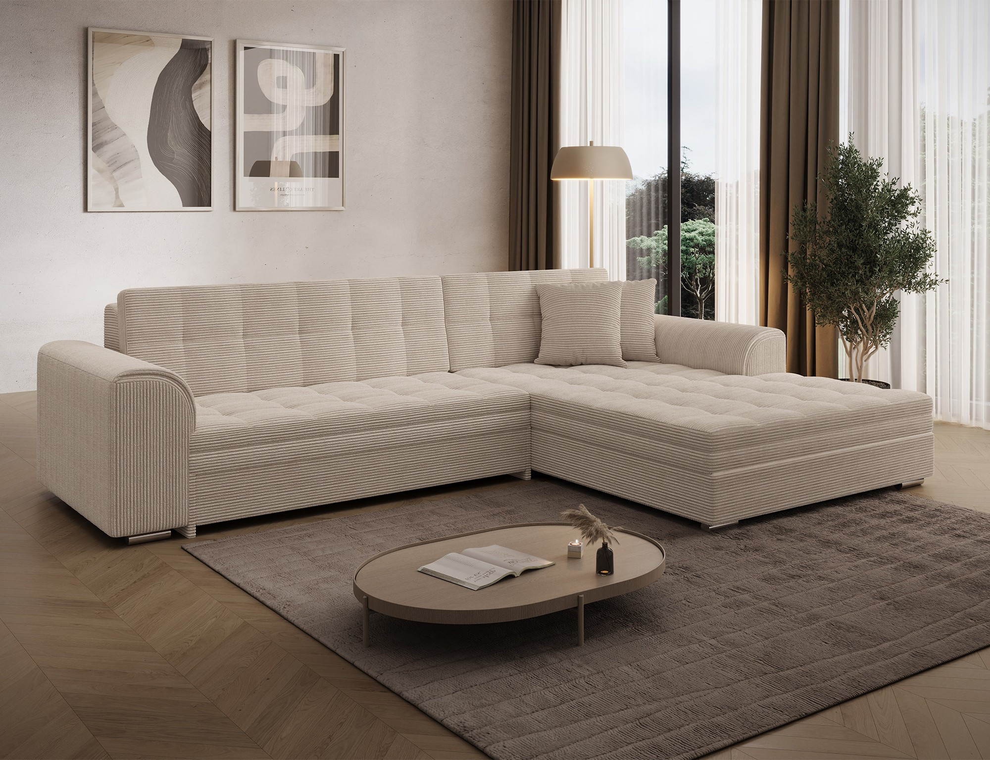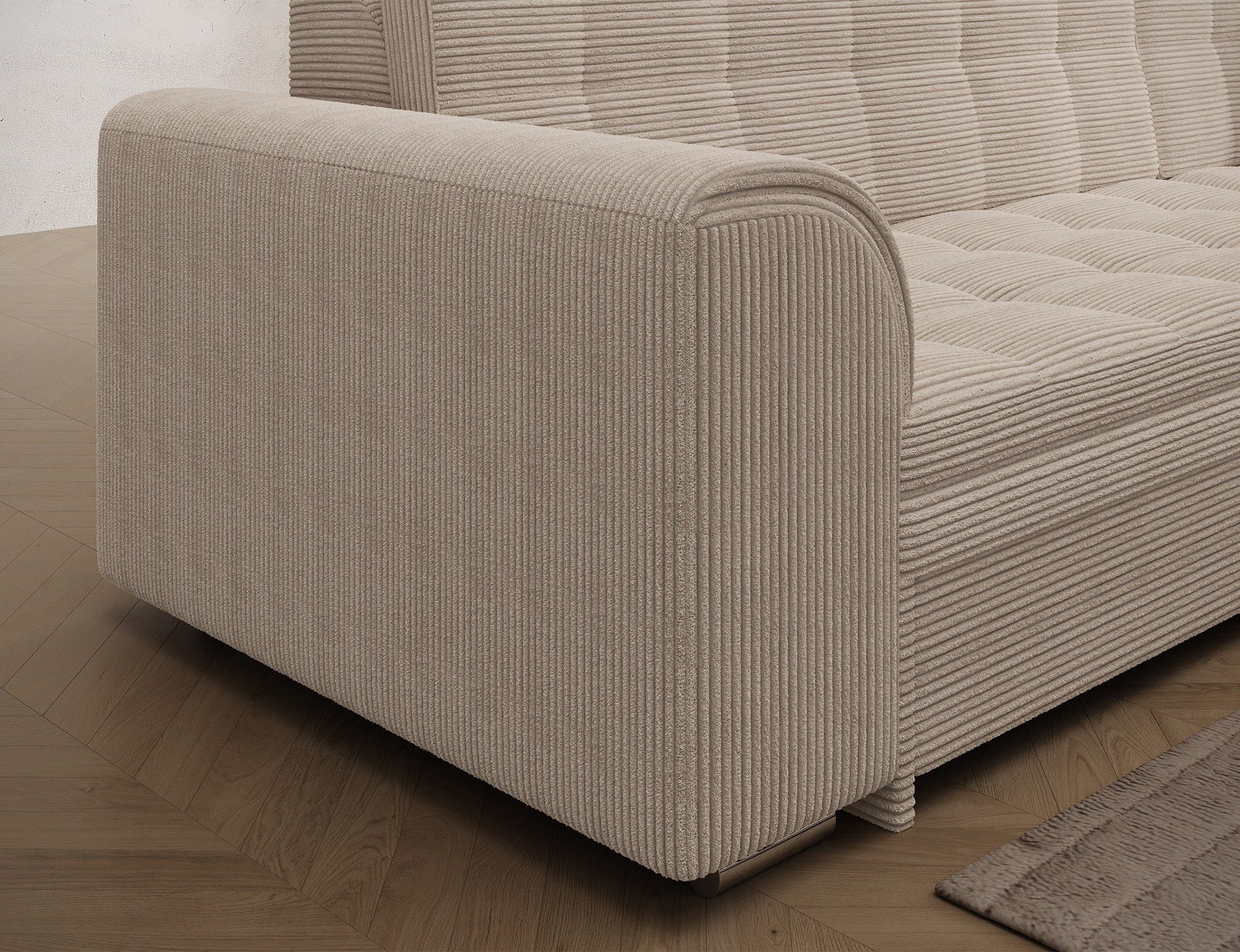 Sorento je stylová, multifunkční rohová pohovka se stabilní konstrukcí ve tvaru L, která vám bude sloužit jako kus nábytku po mnoho let. Pohovka o rozměrech 295 x 195 x 80 cm funguje dobře nejen jako místo pro denní relaxaci, ale také jako ústřední dekorace obývacího pokoje. Díky mechanismu typu delfín je rohová pohovka Sorento vhodná i pro noční odpočinek. Spací plocha o rozměrech 210 x 126 cm zajišťuje dlouhý spánek a plnou relaxaci. Maximální pohodlí zajišťuje kombinace vlnité pružiny a pěny T30, ze které je sedák vyroben. Při výběru rohové pohovky Sorento stojí za to si všimnout jejího neobvyklého stylu, stejně jako: tvarovaného opěradla, zaoblených opěrek a stylového prošívání, které dodávají charakter. Sorento je styl, pohodlí a třída sama o sobě. Určitě stojí za to mít takový kus nábytku ve svém bytě. Sorento je styl, pohodlí a třída sama o sobě. Určitě stojí za to mít takový kus nábytku ve svém bytě.
