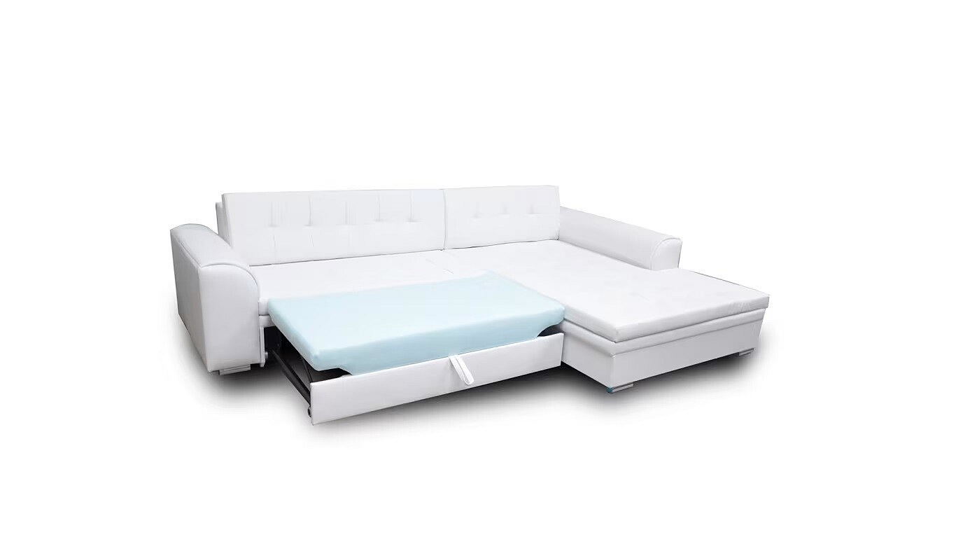 Rohová sedací souprava SORENTO je vyrobena z kvalitních materiálů. Konstrukce sedací soupravy je vyrobena z kombinace dřeva a dřevotřísky. Sedací část je vyrobena v kombinaci polyuretanové pěny T3040 + T2542 a vlnitých pružin. Na opěru sedací soupravy je použita polyuretanová pěna T2542. Sedací souprava je rozkládací pomocí rozkladu typu Delfín.