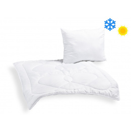 Dětská souprava Optimal obsahuje středně teplou celoroční přikrývku o gramáži 300g/m2. Polštářek je neprošitý s výplní dutého vlákna. Přikrývka i polštář obsahují plně protialergické duté vlákno.
