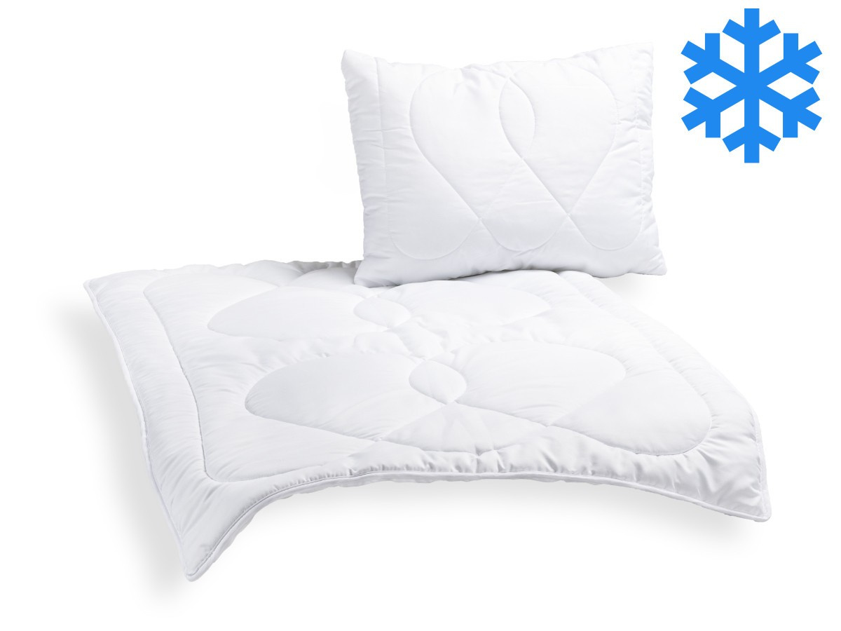 Dětská souprava Thermo obsahuje přikrývku velmi teplou, která zahřeje a to díky vysoké gramáži výplňového materiálu a díky technologii, kdy při šití vznikne vzduchová komora, která umožňuje vyšší udržení tepla. Polštářek obsahuje protialergické kuličkové duté vlákno, které je určeno specielně pro výrobu protialergických polštářů. Polštáře se díky těmto kuličkám dají snadno naklepat a nemění tvar. Kuličkové vlákno je uvnitř prošitého korpusu, který je prošitý ( látka, rouno, netkaná textilie ). Netkaná textilie je velmi důležitým materiálem u polštářů. Hlavní funkcí tohoto materiálu je zabránění spojení rouna s kuličkovým vláknem. Polštář je opatřen zipovým uzávěrem, pro možnost doplnění či odebrání části výplně dle potřeby.