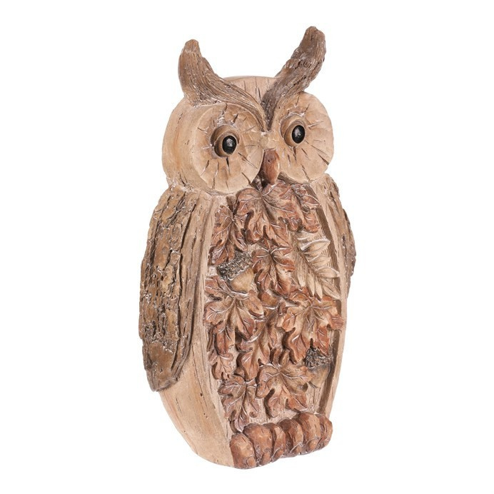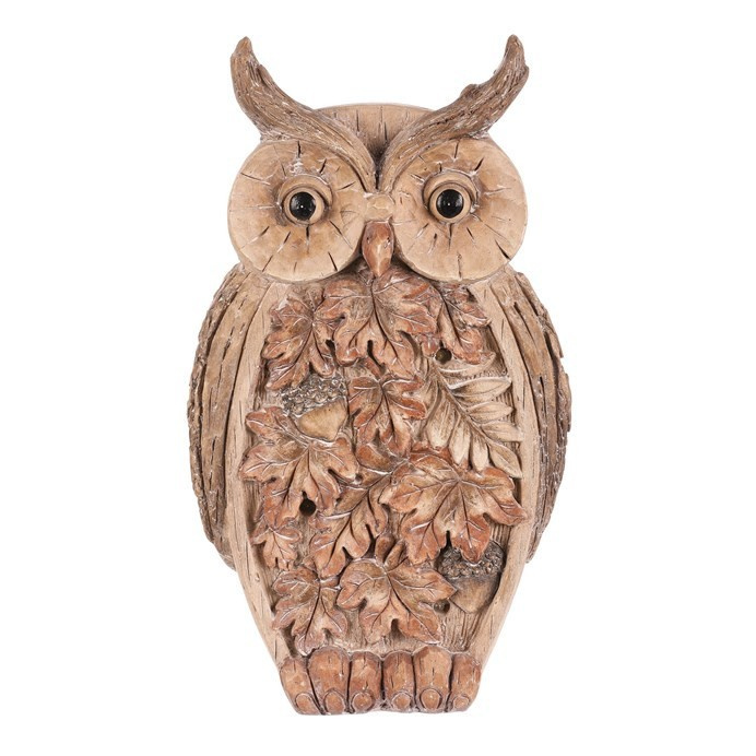 Sova s osvětlením v imitaci dřeva a s podzimním listím přináší do vaší zahrady kouzelnou podzimní atmosféru. Vyrobená je z magnesia, ale svým zpracováním skvěle zapadne mezi dřeviny a keře. Dekorace je vybavena osvětlením, díky kterému můžete rozsvítit vybrané místo, čímž vytvoříte zejména za temných večerů, skutečně tajemnou atmosféru. Tato sova je skvělou volbou pro zahradu, terasu, balkon, případně i stylovým prvkem vybraného místa v interiéru.